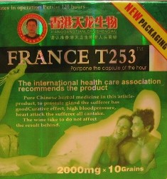 FDA laboratory analysis confirmed that “France T253” contains sildenafil, the active ingredient in Viagra, an FDA approved prescription drug for Erectile Dysfunction (ED). Sildenafil may interact with nitrates found in some prescription drugs such as nitroglycerin and may lower blood pressure to dangerous levels. Men with diabetes, high blood pressure, high cholesterol or heart disease often take nitrates.