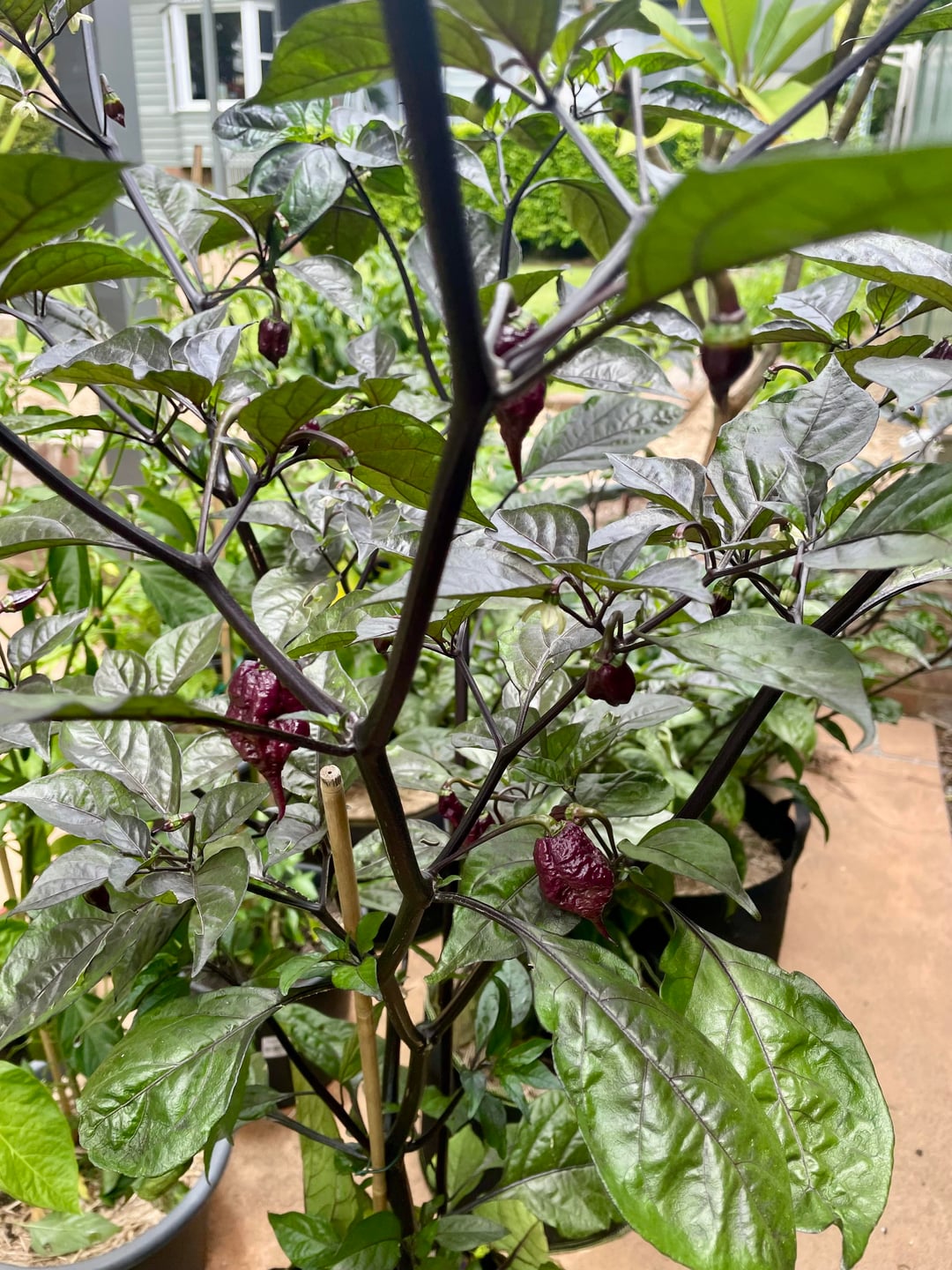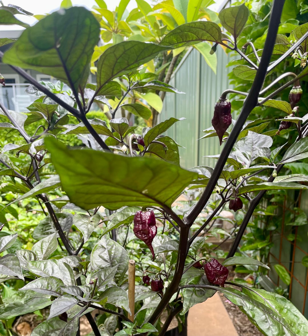 I think these are Purple Reapers, and I think I’m scared! Love watching these grow, but I fear they are waaaaay too hot for me to eat.No idea what I’m going to do with them besides admire them as they grow.by love_ya_work 1 Comment tito_123 2 weeks ago looks pretty scary! and just pretty