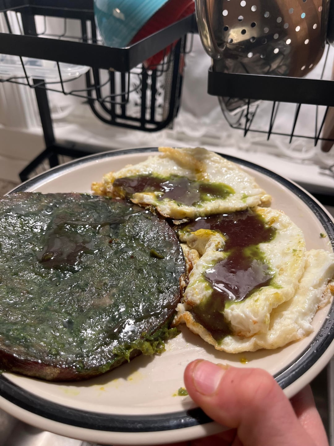 Had the opportunity, tools, and product and curiosity to make “Green Eggs, and Ham”. Took a lot of time and a bottle of cab, and here’s what happened.by Responsible_Moose_93 13 Comments milkbonestheluminous 2 months ago i wish you hadn’t, sam I am. I wish you hadn’t made green eggs and ham. Carcosa_Hearty1986 2 months ago Every day, we stray further from the light. Accomplished-Dog4523 2 months ago This should only ever be eaten with chopsticks 🥢 StankyLeg666 2 months ago A concerning use of free will. Comfortable-Call3514 2 months ago Wow and congratulations, that looks awful dingleballs717 2 months ago Girl. I know you are probably not. grossgrossbaby 2 months ago These eggs and ham do not jiveNext time please just use a chive DiShMiNiOn 2 months ago I would’ve scrambled the eggs and added food coloring to the scramble before it goes in the pan. VioletMAyis 2 months ago The slop Kiriyuma7801 2 months ago Okay, but what exactly was the process here? I’m disturbed, yet intrigued. jaimybenjamin 2 months ago Then stop thinking atjeff1 2 months ago What’s that bottle on top of the chopsticks that you are trickling onto the ham steak? Affectionate-Snow404 2 months ago No