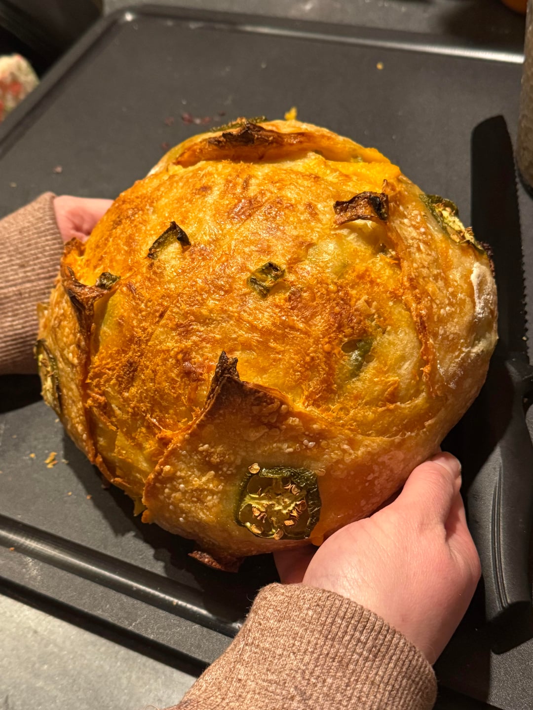 Hi OP, I’m a mega-ultra-super beginner and my goal is to make a cheese-jalapeno loaf EXACTLY like this. It looks great to me. Can you share the recipe please?