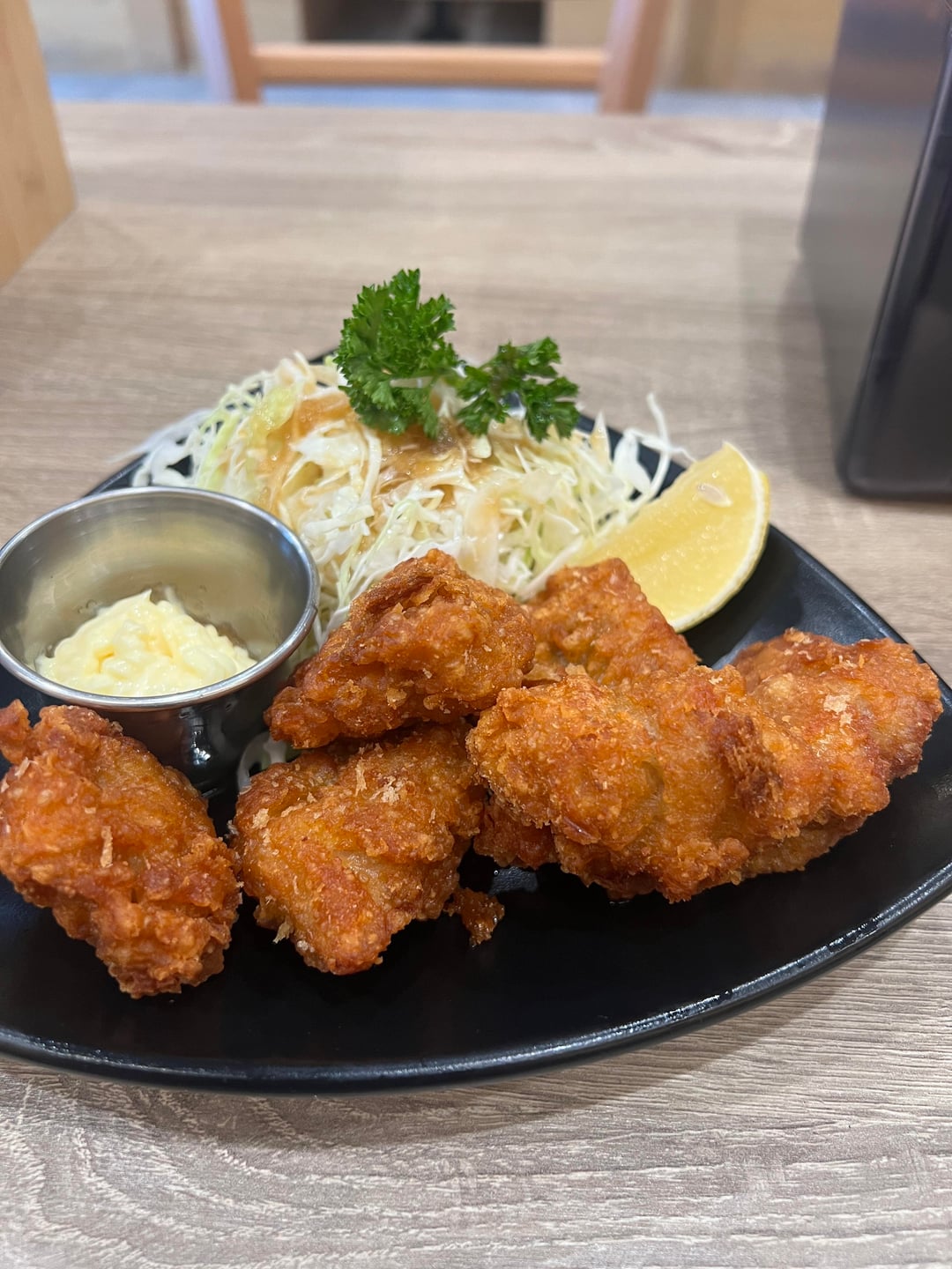$20.99 for the hamburg steak set and $8.99 for the karaage chicken. Friendly fast service. Free parking in the small lot in front of the shop, on the street or in the back lot next door. Cash and card accepted. 7/10