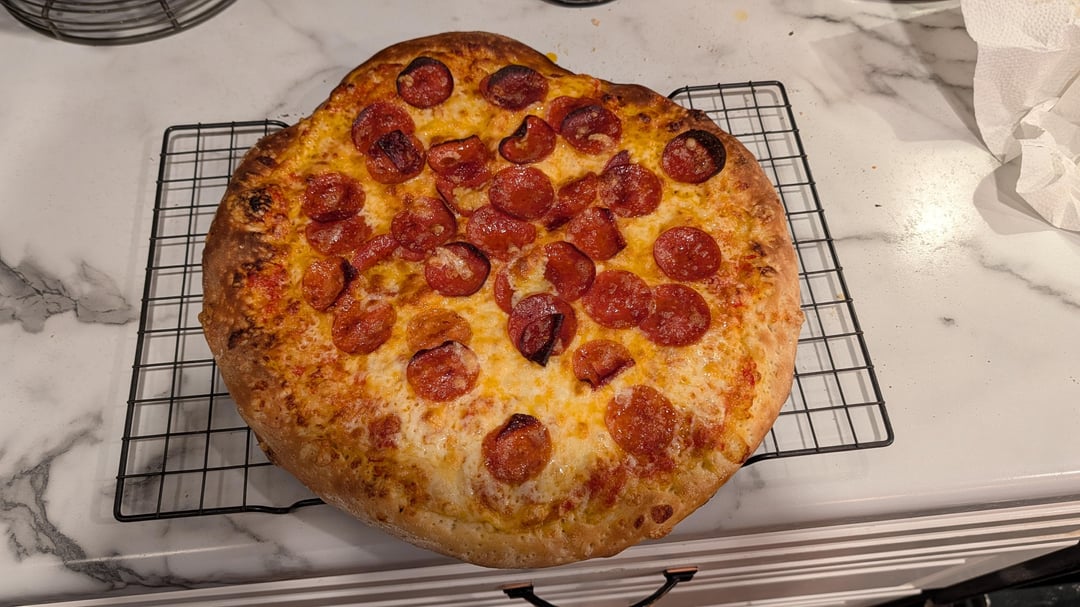 1st cook last night with my new pizza steel. I used Publix made dough (I'll bust out the pizza bible for my next pizza). I used Pizzaiola sauce which is just absolutely delicious. For the cheese I shredded a mixture of whole milk mozzarella and muenster cheese (I may try to add in some provolone next time). The pepperoni is boars head but next time I'll try my hand at slicing my own off the log. Overall, pretty good and some lessons learned. Excited to keep tweaking and improving!