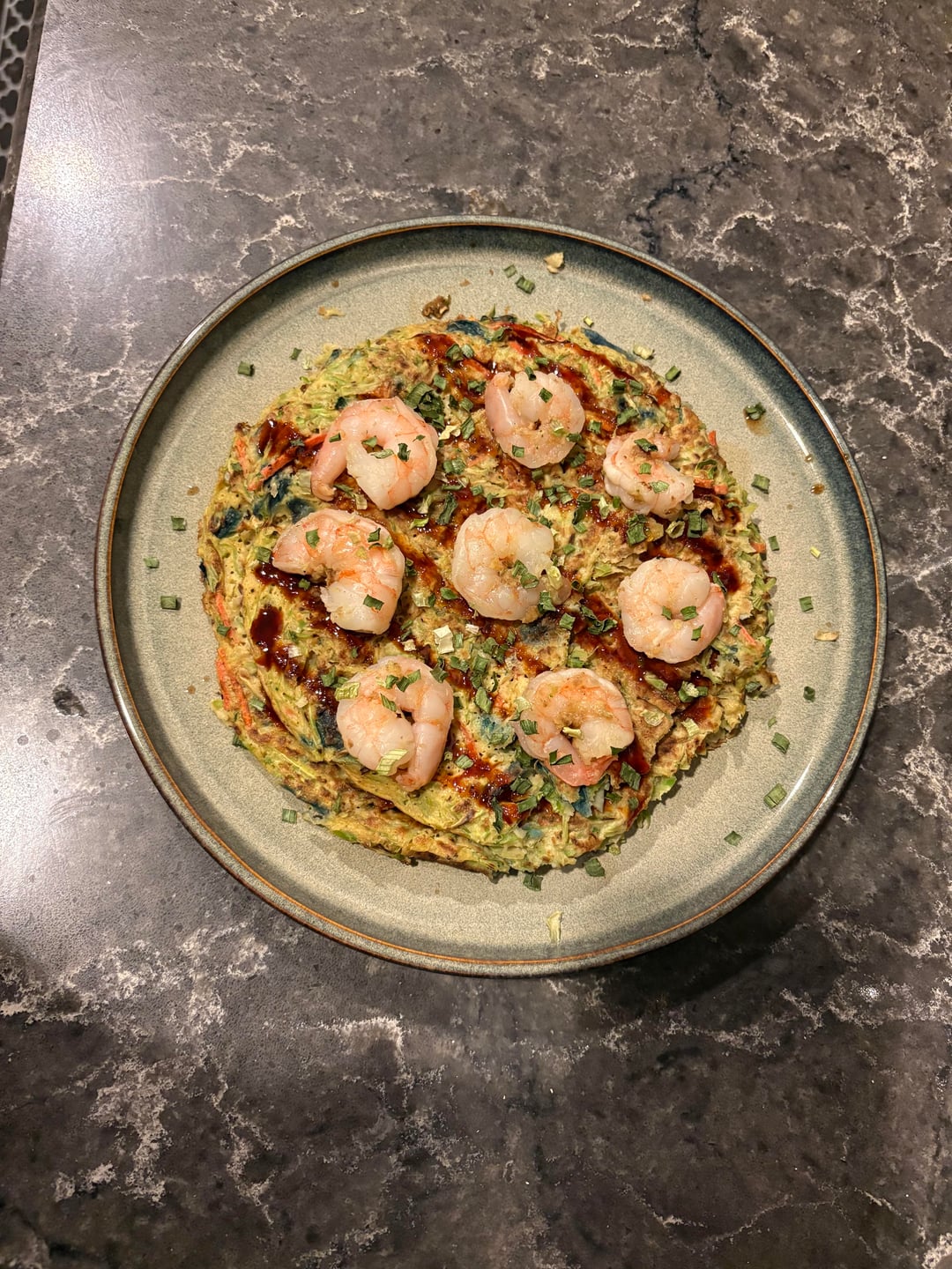 For breakfast I had strawberry shortcake overnight oats. For lunch I had a veggie plate which included hearts of palm, grape tomatoes, carrots, cucumber, fat free cottage cheese ranch dip, cheese, and whole wheat crackers. For dinner I had 2 okonomiyaki pancakes with soy sauce and gochujang sauce, topped with shrimp and dried chives. As a desert I had a homemade ice cream using a protein shake, sugar free caramel, and coffee.