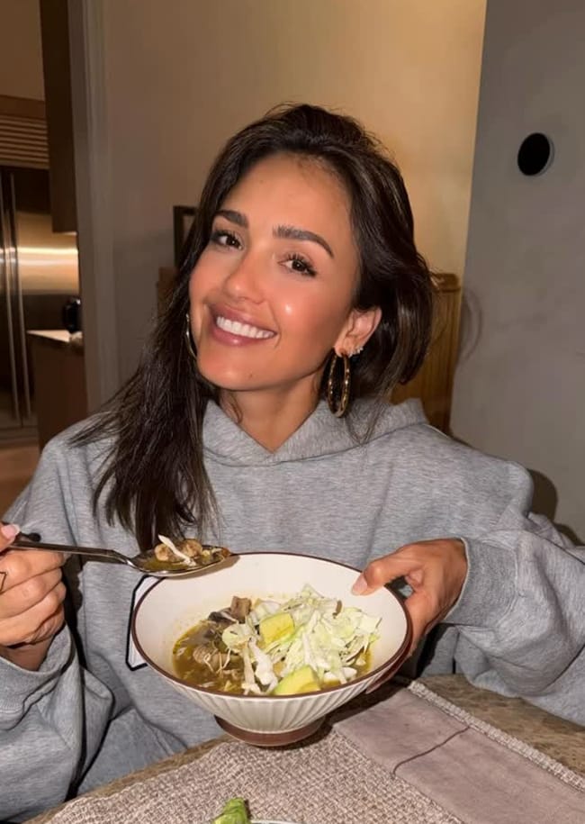 On Instagram, one fan wrote, “Jessica I love u but it’s giving Rachel Ray.” A second said, “It looks good and healthy. But not a Pozole.” A third commented, “That’s definitely more like a caldo de pollo (chicken soup) NOT pozole— healthy for sure.” A fourth noted, “She’s making it identify as pozole but we all know it’s not pozole.” Someone else quipped, “Please don’t call that pozole. It’s soup. Call it soup.” One user added, “Like only 4 ingredients from pozole in this chicken soup, including water, but looks yummy and healthy.”