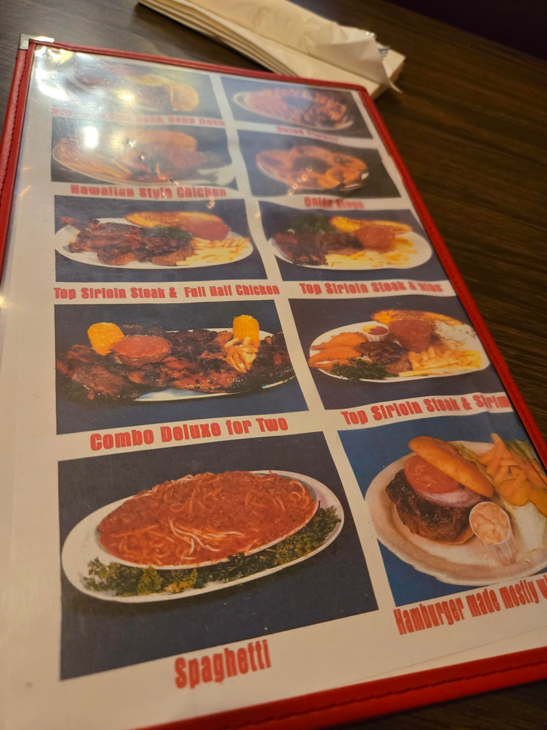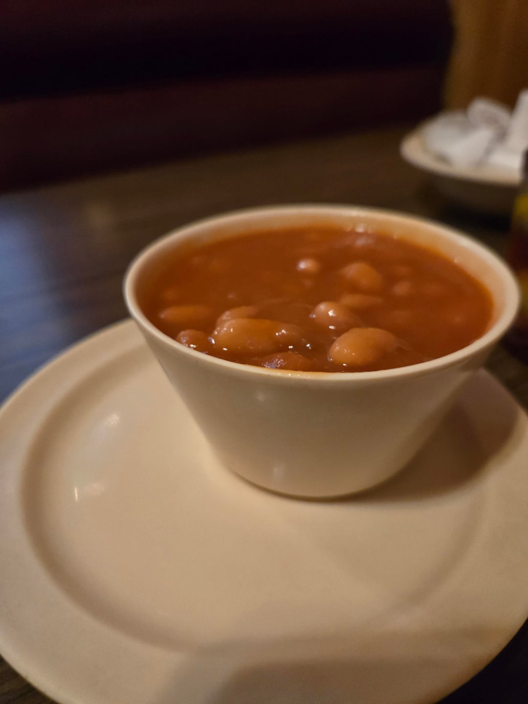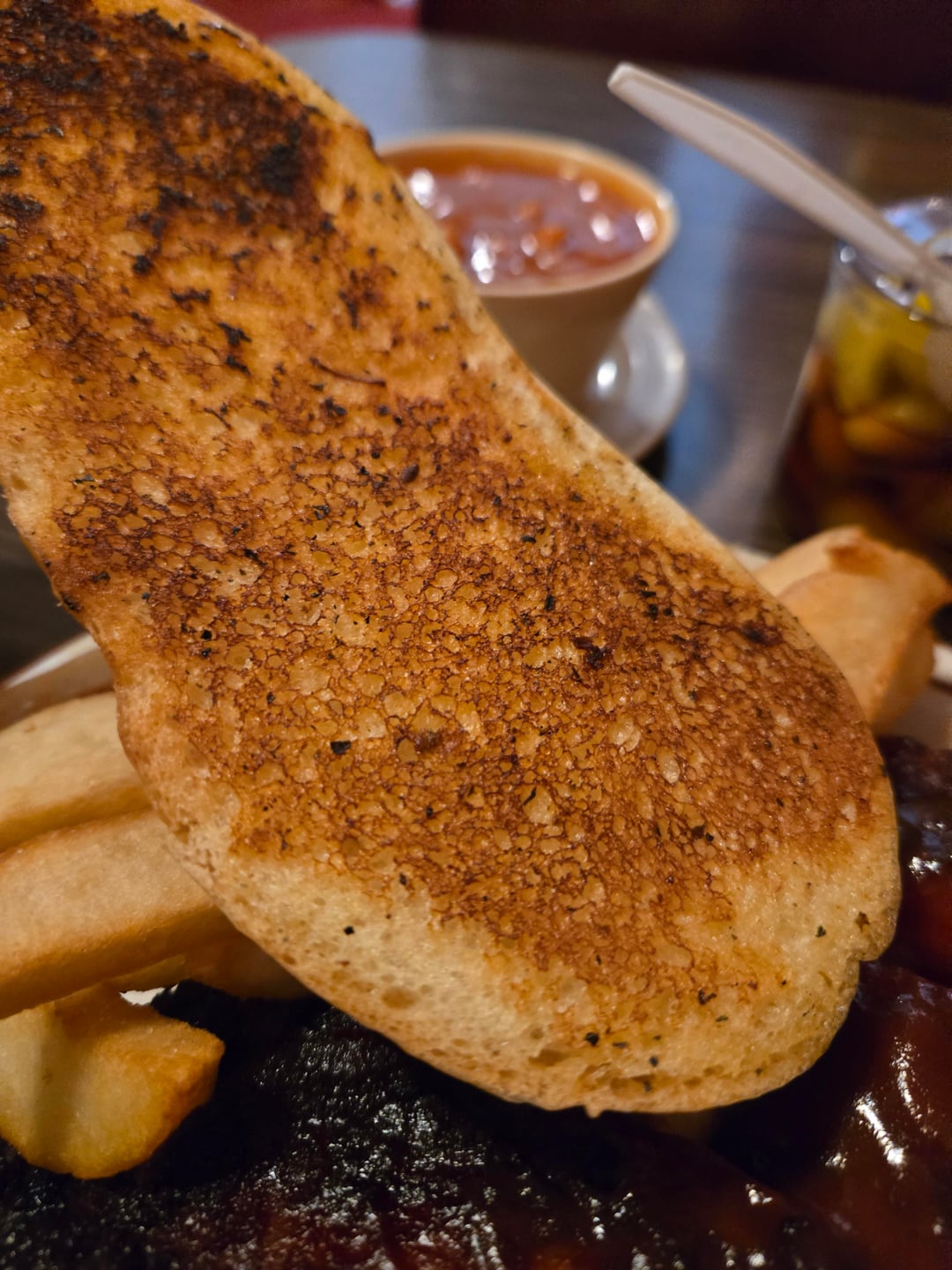 the old stalwart of LA BBQ. has kind of a diner vibe to it. ribs are their specialty so I got a platter with a spare rib, a beef rib, and two baby back ribs. the baby backs (pic 4) were dry, and the beef rib (pic 3) tough and gristly, but the spare rib was actually really notably good. good flavor, nice and tender, good rub that didn't need a ton of sauce in addition. I'd definitely come back but just for spare ribs. the sides were just ok – garlic bread wasn't very garlicky, and the beans are essentially similar to a can of Heinz Baked Beans. but the spare ribs and that sauce, those I can endorse.