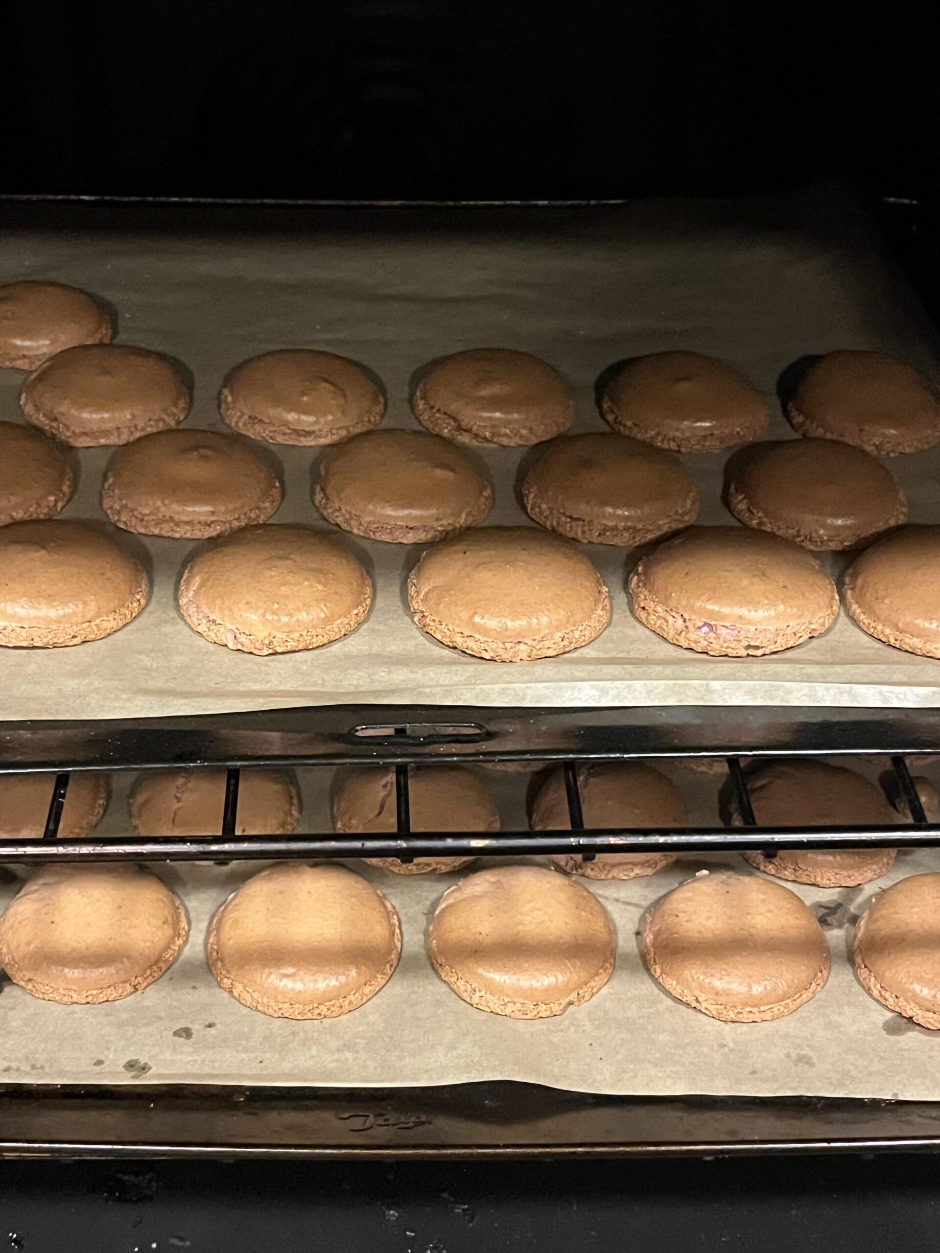 I’m so upset. I thought this batch was actually going to be a success but no. The mixture looked nearly perfect but they’ve expanded/spread so much?! The feet are awfully uneven and they’ve gone brown (they’re supposed to be pink)