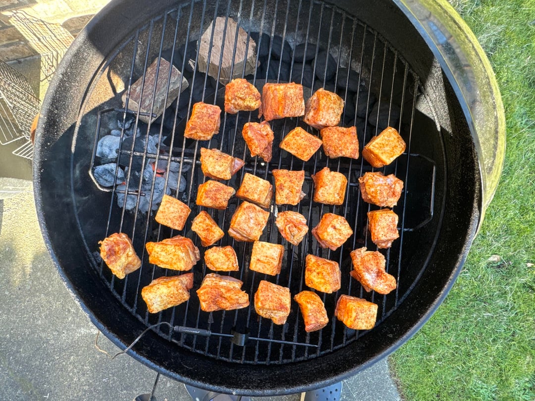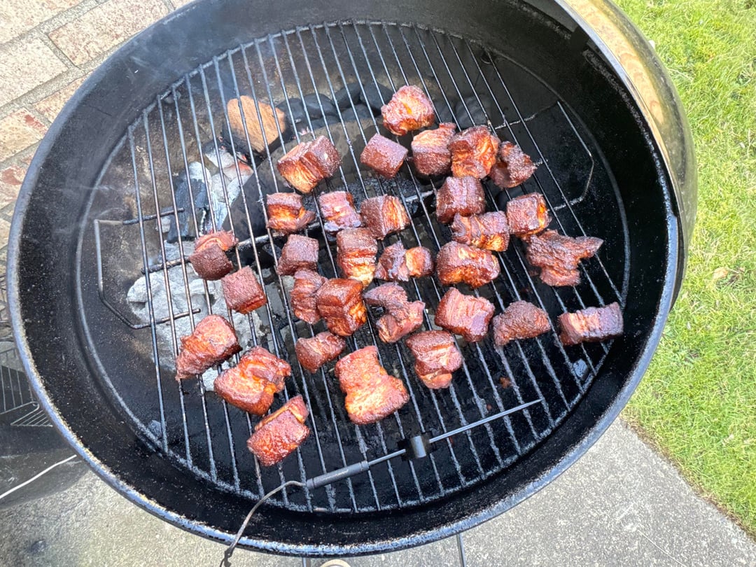 Pork belly burnt ends on the Weber 22”. Just in time for the game. Go Hawks!by Revolutionary_Link62 2 Comments Significant_Koala_61 1 month ago Yummo _Sir_486 1 month ago Is that a snake method in there or something similar? Looks like you do a great job!