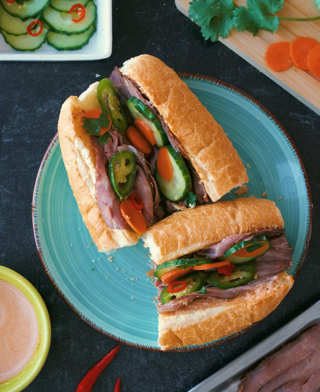 I sliced half and chopped half. Made homemade Arby's sauce for a tasty chopped beef Arby's style sandwich. And banh mi as well.