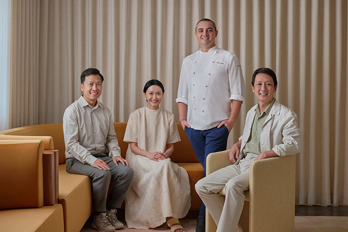 Chef Julien Royer with Sacha Leong, Dawn Ng and Lo & Behold Group founder Wee Teng Wen. Courtesy of Odette