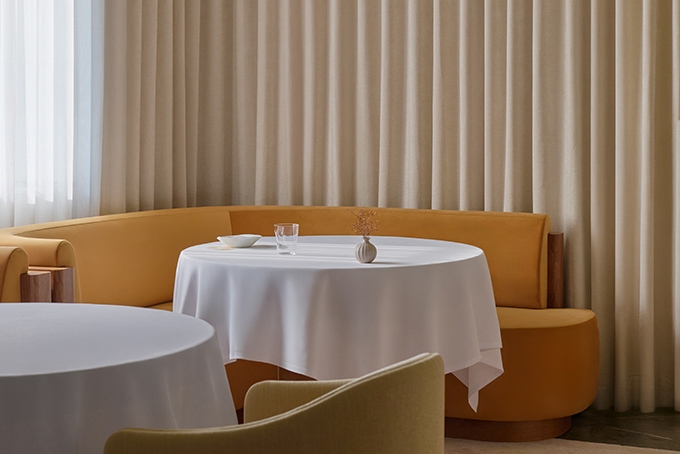 This is where interior design firm Nice Projects steps in. Known for a distinctive design language rooted in texture and materiality, the firm has long been a trusted creative collaborator. Together, the team shared a singular vision for every guest at Odette: to feel cocooned, enveloped in comfort as they move from one course to the next. Every textile choice is deliberate, from the banquette upholstery to the curtains that adorn the walls, each element carefully considered to enhance the overall experience.