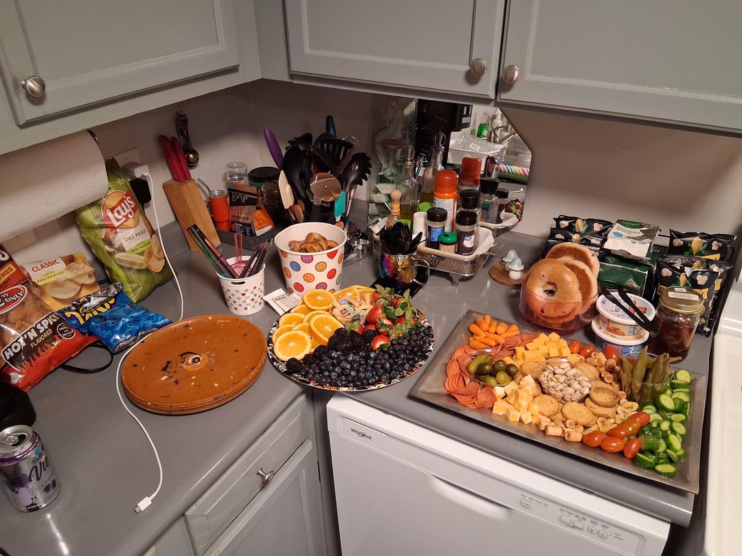 Basically a depression party. Show up as you are. We made art, smashed blocks of ice and ripped up paper. It was a blast! I threw this together. I know I could have taken more time for prettier arrangement, but it fit the theme lol. Was a big hit!