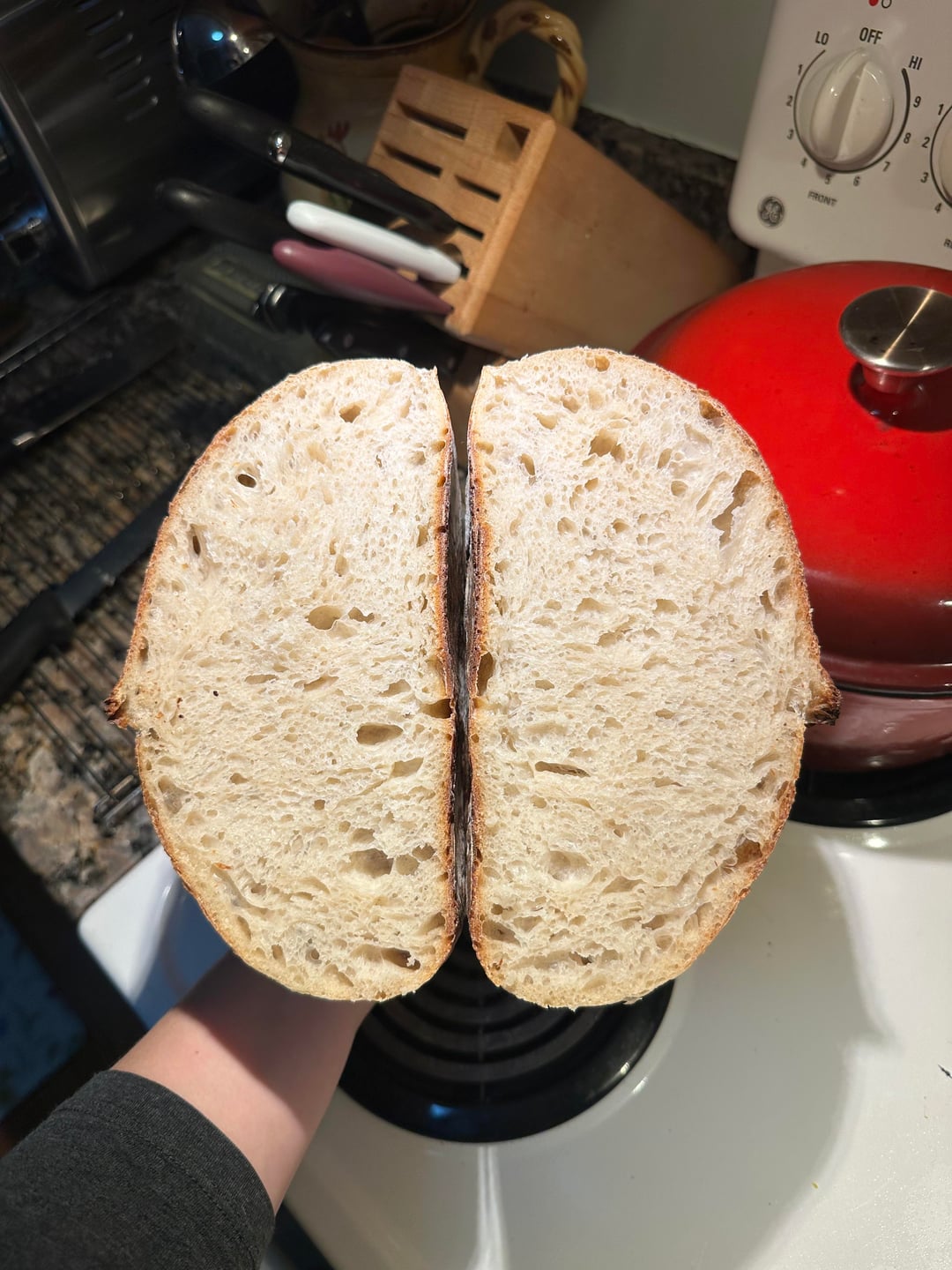 This is a perfect loaf for me. Not overbaked on the outside, nice and dense on the inside. Well done!