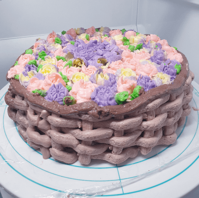 He spent hours watching a bunch of videos and made Russian buttercream and made white chocolate ganache and use red velvet box cake mix practiced on a plate and use Russian piping tips. He did the whole thing! (With me watching him complete each part cause he was excited to show me how well it was coming together)