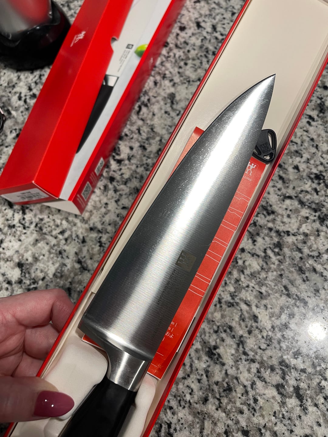 So Zwilling sent me a used knife with greasy fingerprints and water stains.. totally worth that “$145 value”WHAT A PRIZE.by kittykathy92 1 Comment VacationLover1 2 weeks ago What did they say when you messaged them and told them?