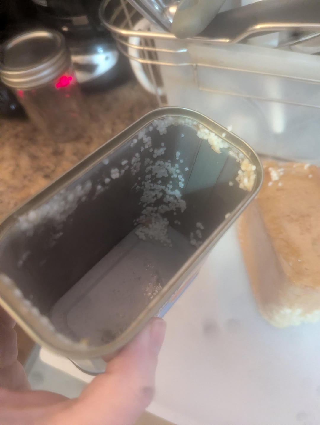 Edit: Just watched this YT, around 4:30, you can see that it has oil around the “unmeat”, yours probably solidified?