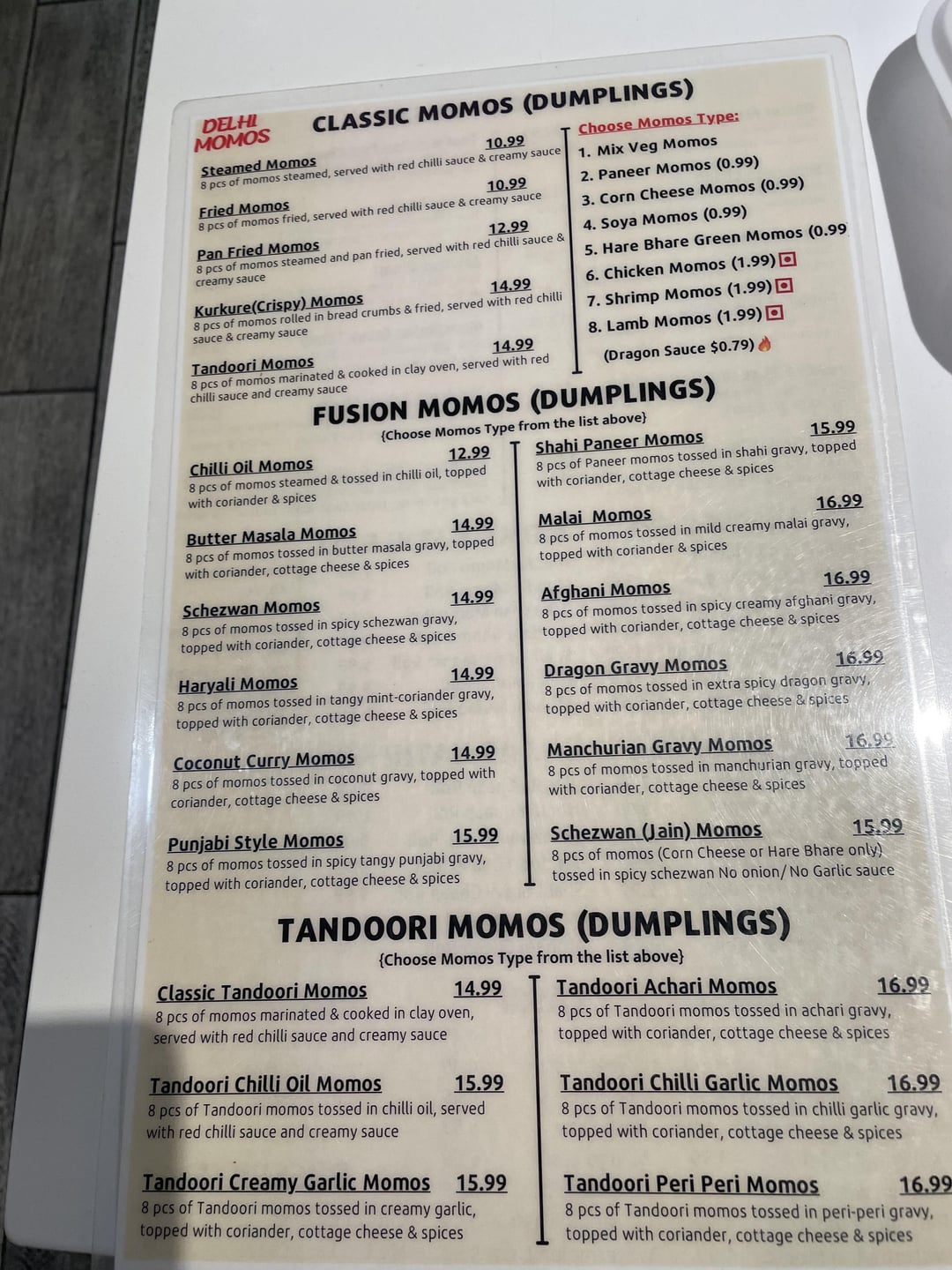 Pictured are tandoori momos with paneer filling, and Afghani momo roll with corn cheese.