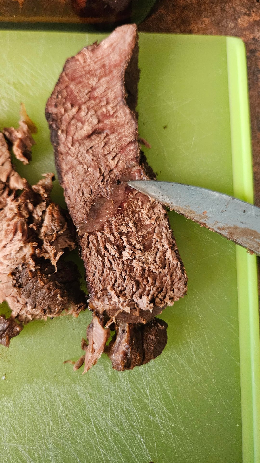 meat is too lean- you need some fat and collagen to break down during the braising and this cut doesn’t have either in it. stick to roasts and cuts that have fat and collagen in ’em.