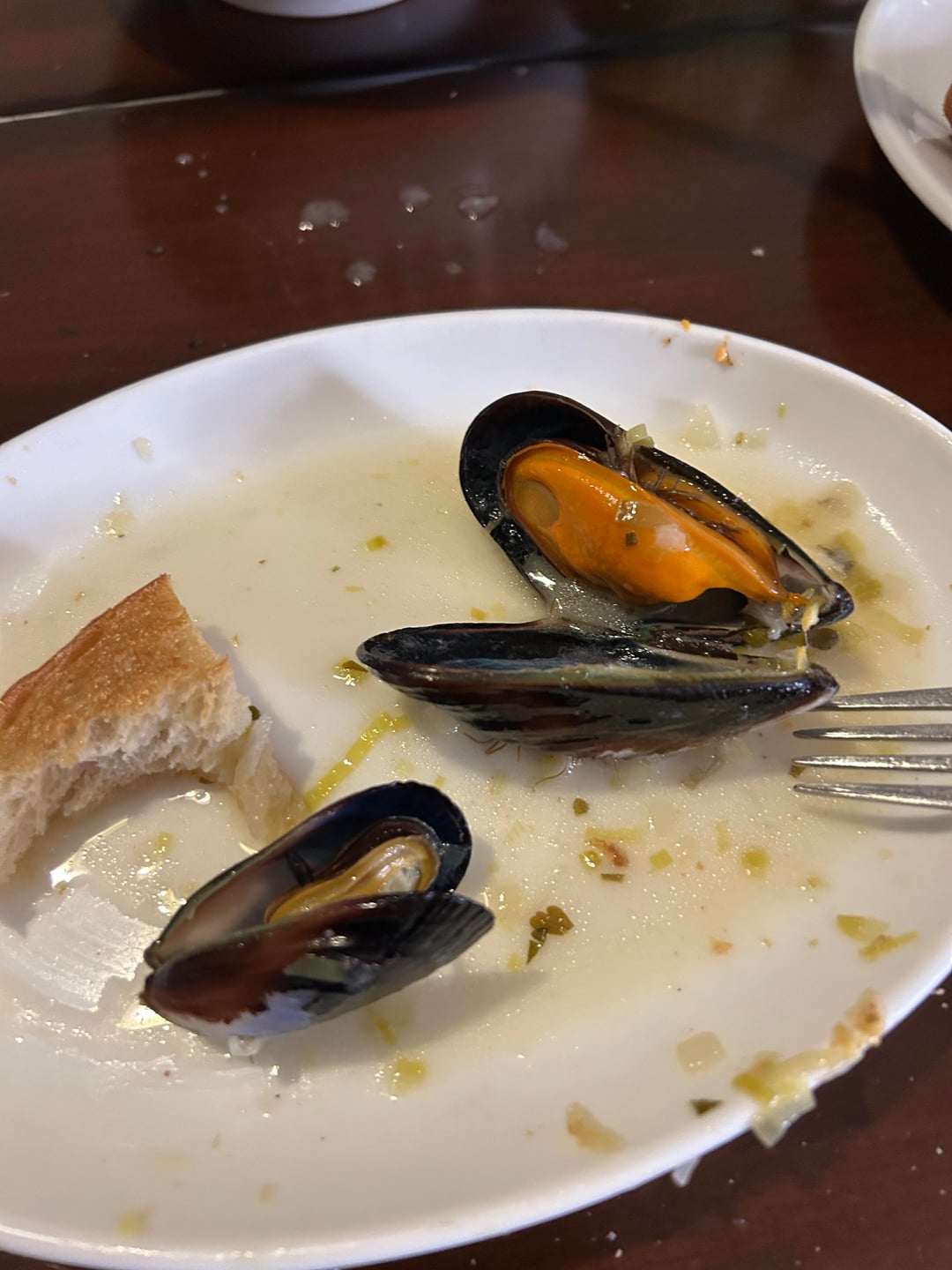Northern California mussels harvested at low tide. Steamed in wine, butter, leeks and garlic with crusty bread on the side. Simple and delicious. They were way meatier than grocery store PEI mussels. Beautiful orange flesh. Will do again 🙂