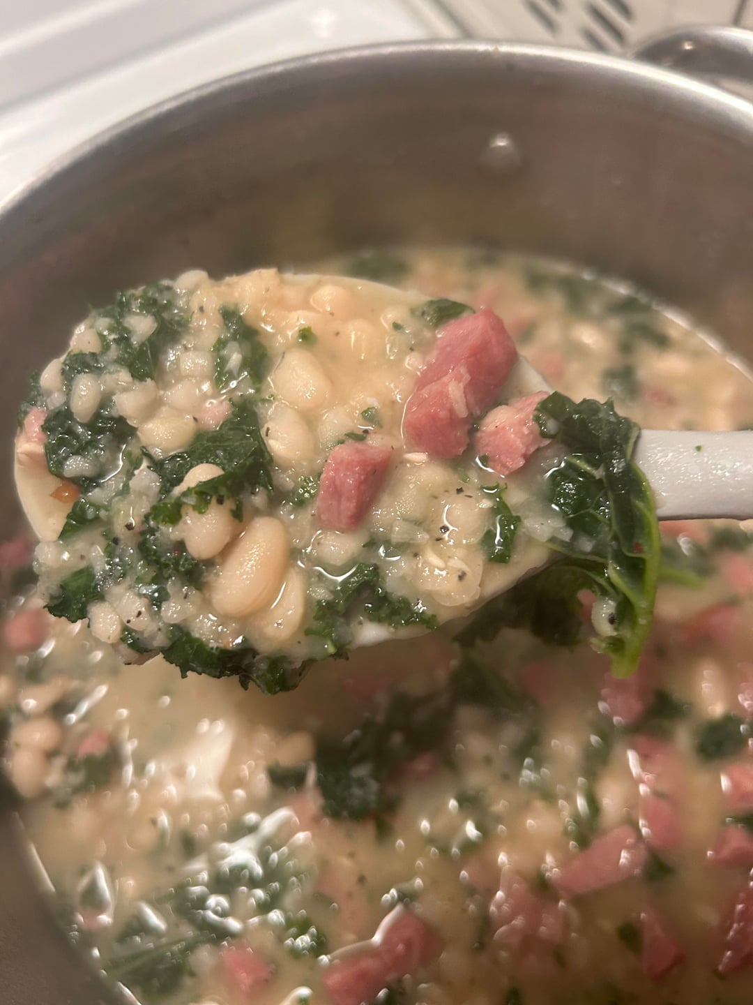 White bean, ham & kale soup