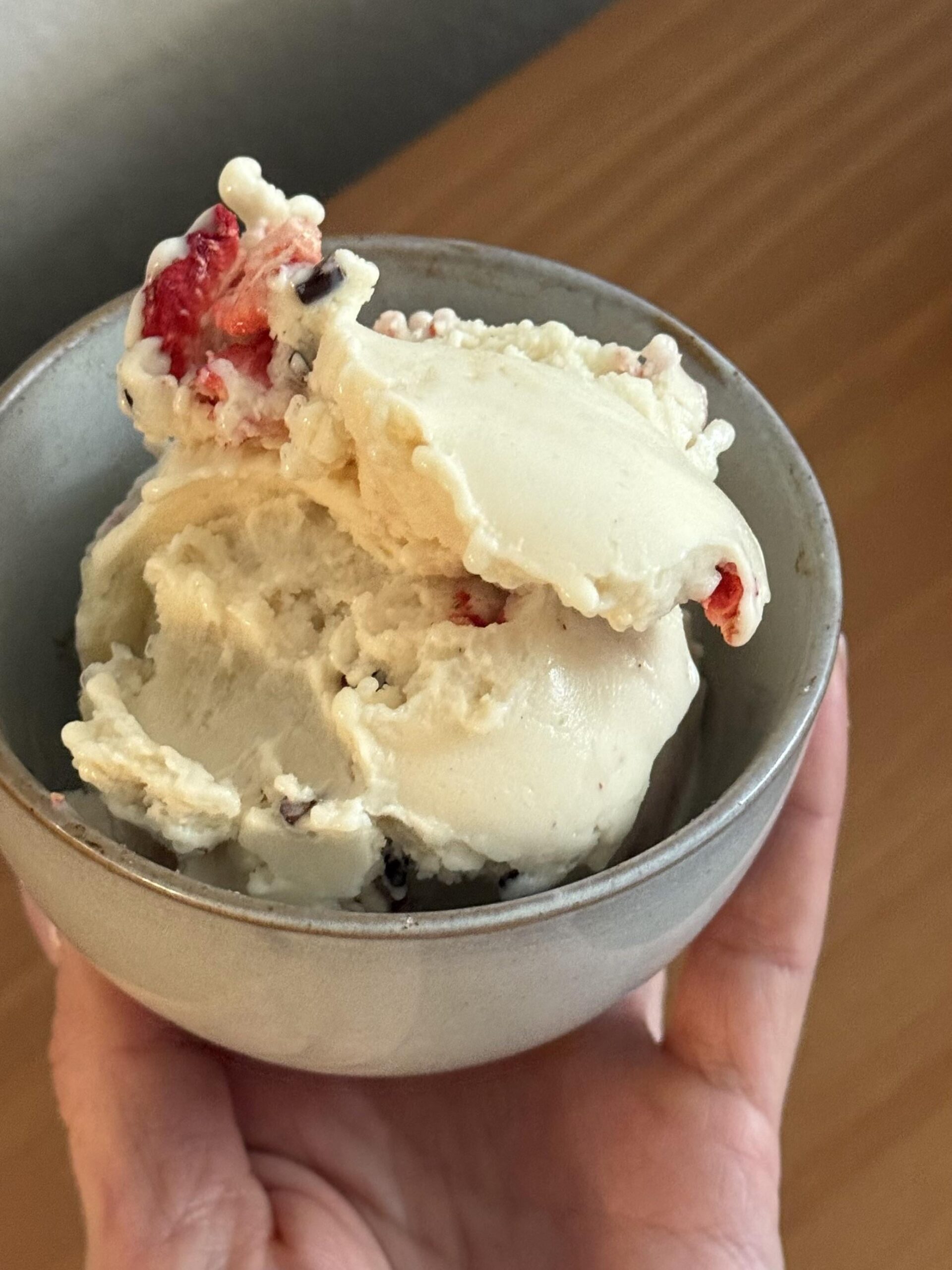 splash of harmless harvest coconut smoothie ADD AFTER somehow this is what makes it ice cream texture