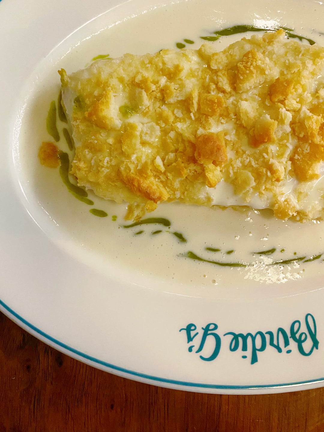 4 – halibut olympia w/dill salsa verde + ritz crackers
