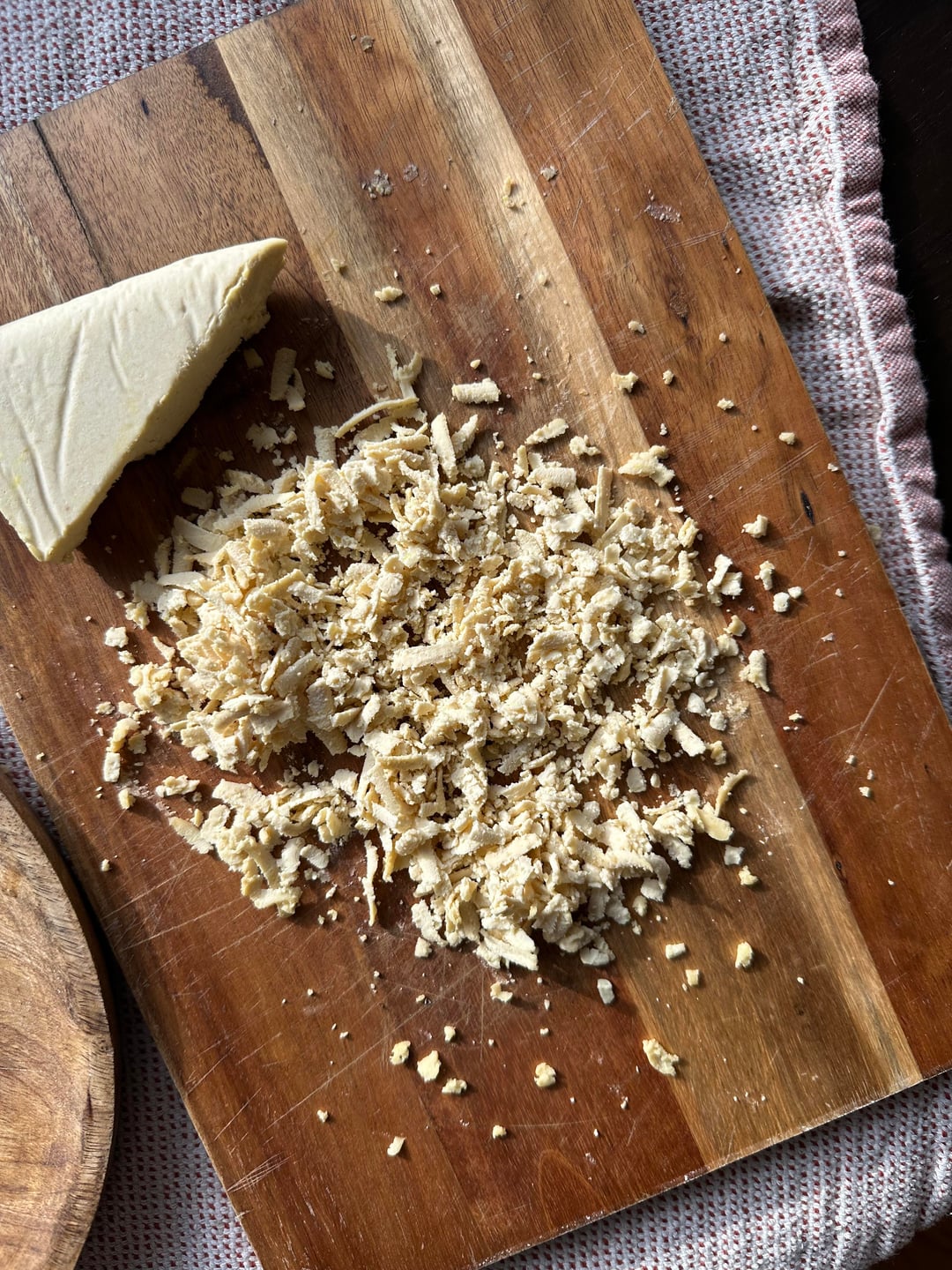 What finally unlocked everything was adding potato. Combined with soy cream, it gives structure and body, so the result isn’t just fat. Nutritionally, it actually lands in the same general range as dairy cheese in terms of fat content, which was important to me, I wanted something that behaves like real cheese!