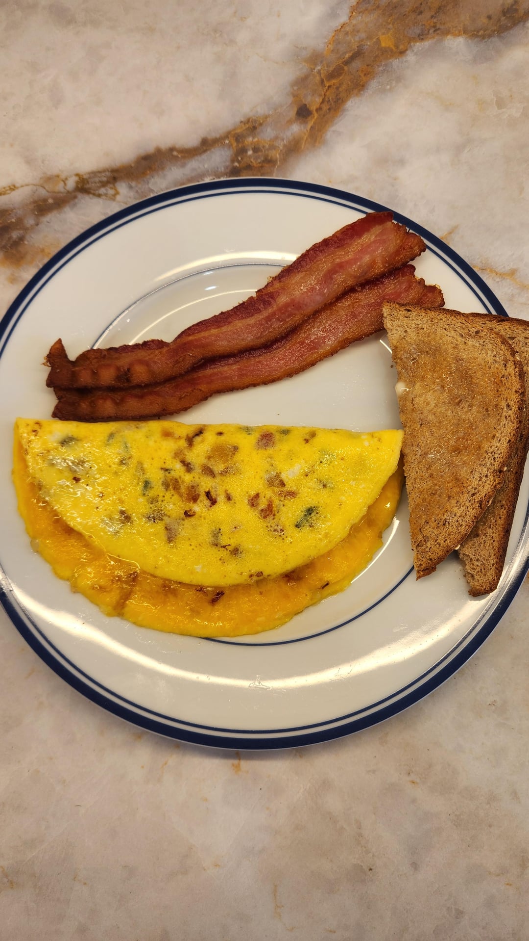 Tri-colored peppers, onions and cheese omelet, oven bacon and buttered toast. by GuavaOdd1975 3 Comments Fuzzy_Welcome8348 3 months ago Looks yummy! 😋 mad_mongoose 3 months ago Beautiful flip! Bubbly57 3 months ago Your breakfast looks wonderful and really delicious 🌟 😋