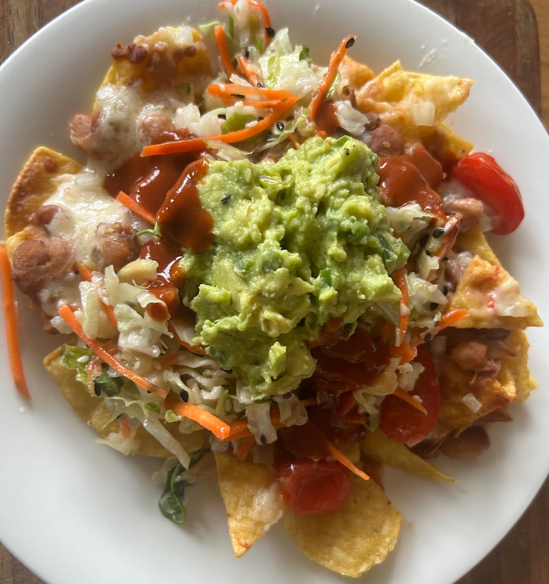 We used a lot of the turkey in casseroles and soups but saved the thighs for the playoffs. We made our own cheese sauce and guacamole (diced jalapeños, lime juice and everything bagel powder), halved cherry tomatoes and diced onion, our own beans with chorizo, cabbage slaw, and topped them with turkey. Much cheaper than ordering chicken wings and nachos from somewhere.