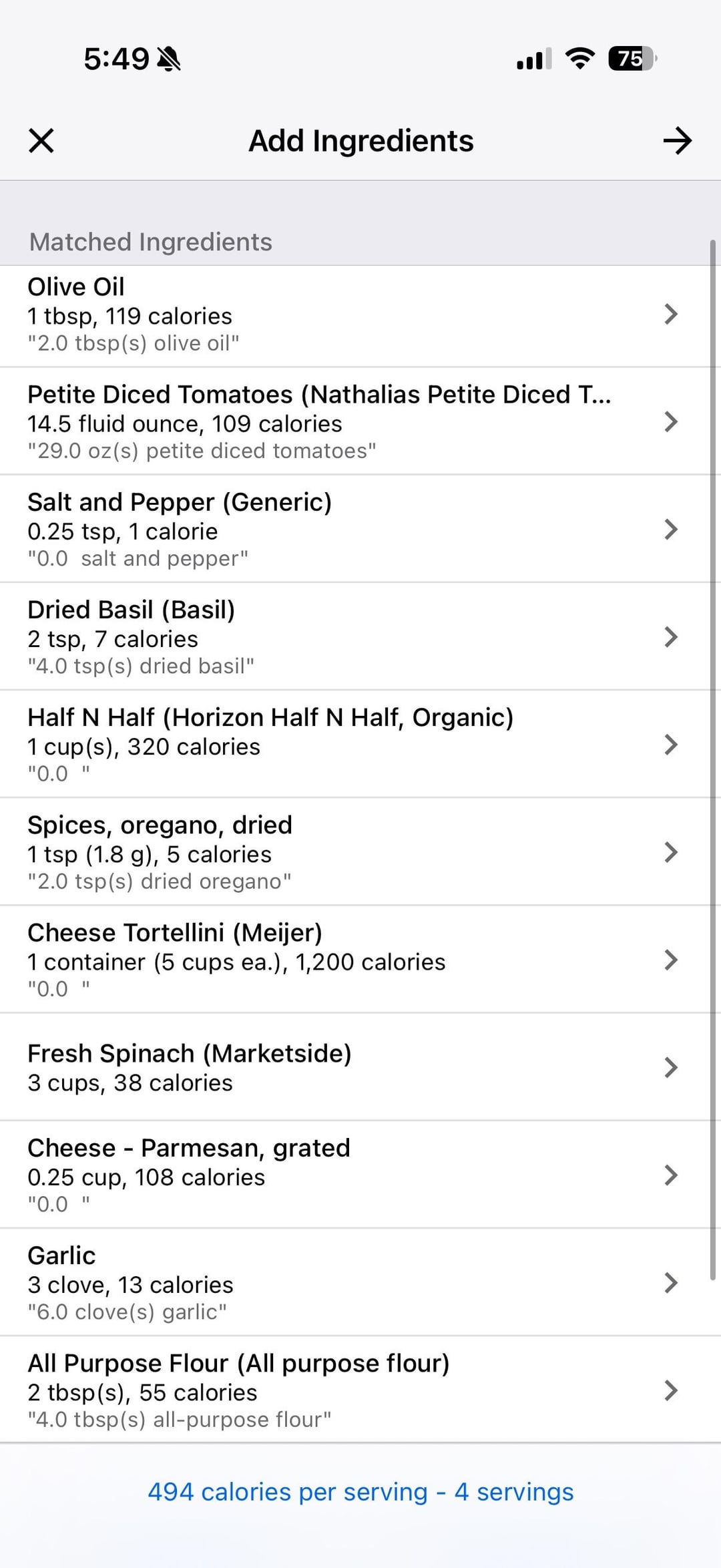 half n half/cheese might be like 8g