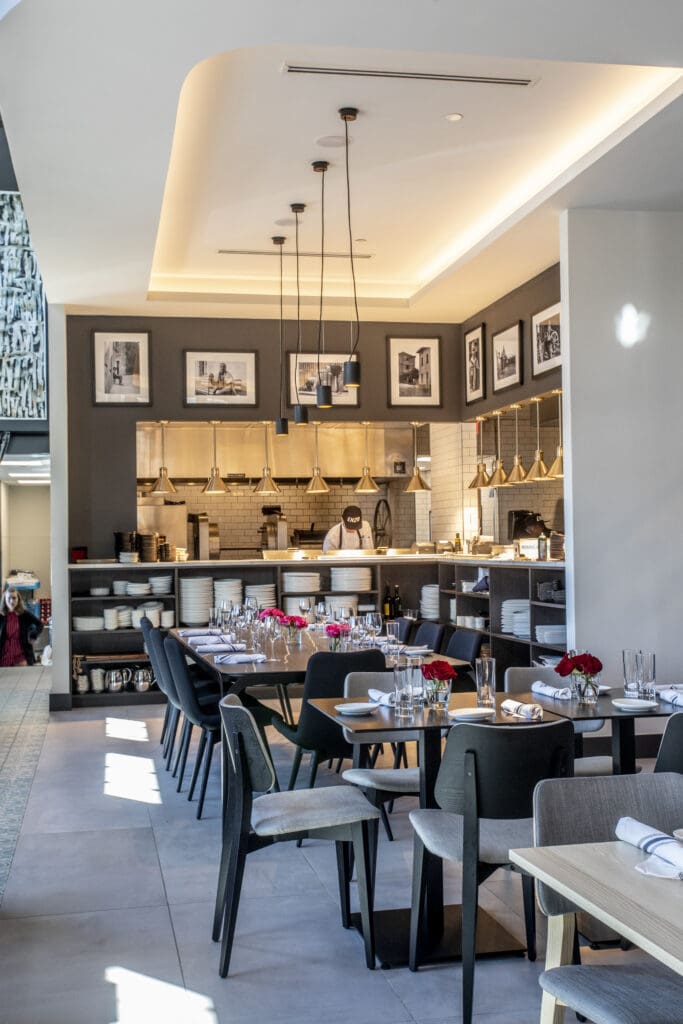 Lunch service is offered Tuesday through Friday from 11 a.m. to 3 p.m. Guests can dine in the airy, art-forward dining room or opt for a table on the expansive, dog-friendly patio, surrounded by warm hospitality and the subtle scent of wood smoke from the rotisserie and grill. The open kitchen remains a focal point for Montobbio and his team, where technique and instinct meet over flame.