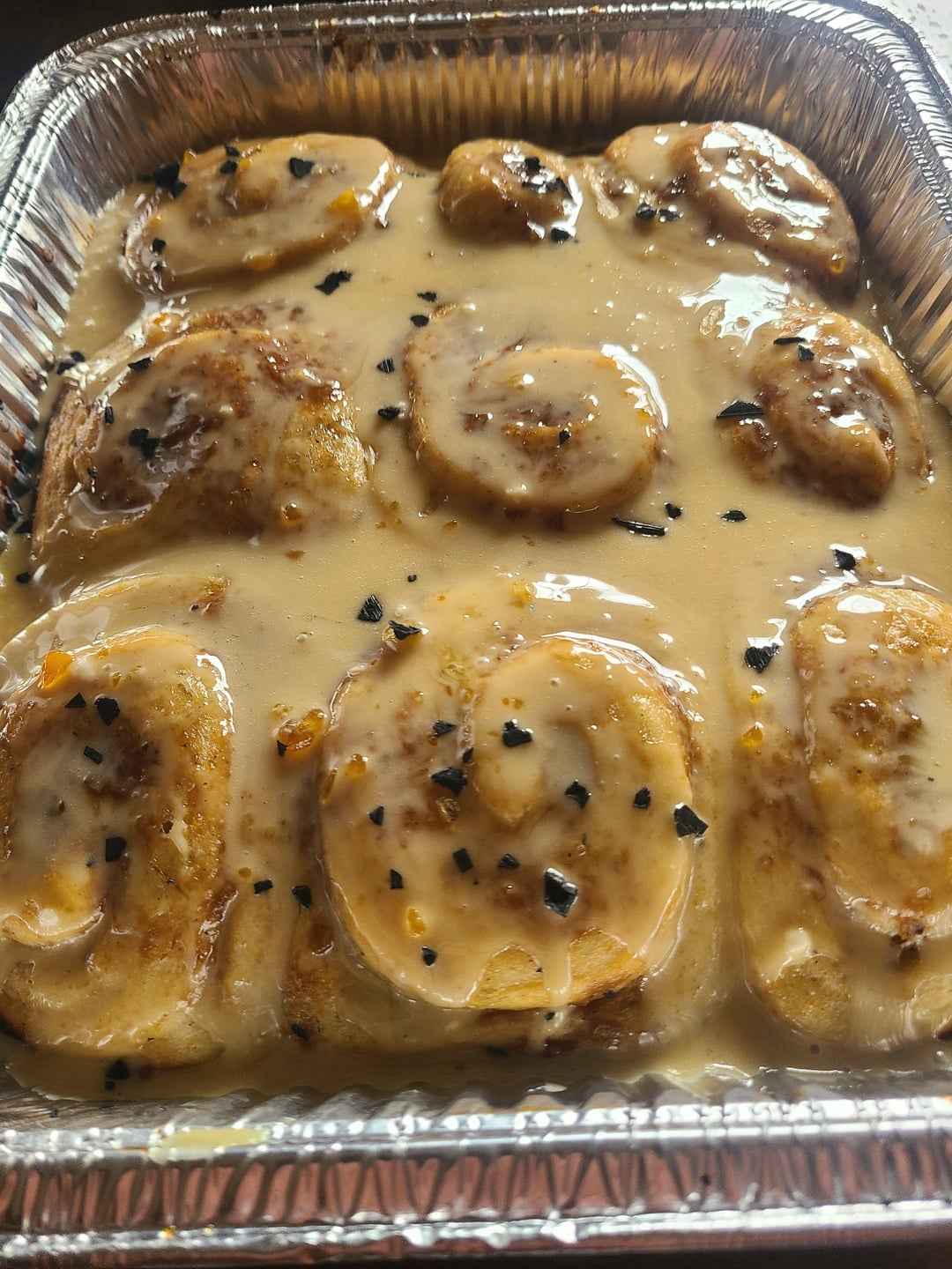 Browned Butter Apple Cider Brioche Cinnamon Rolls – $3