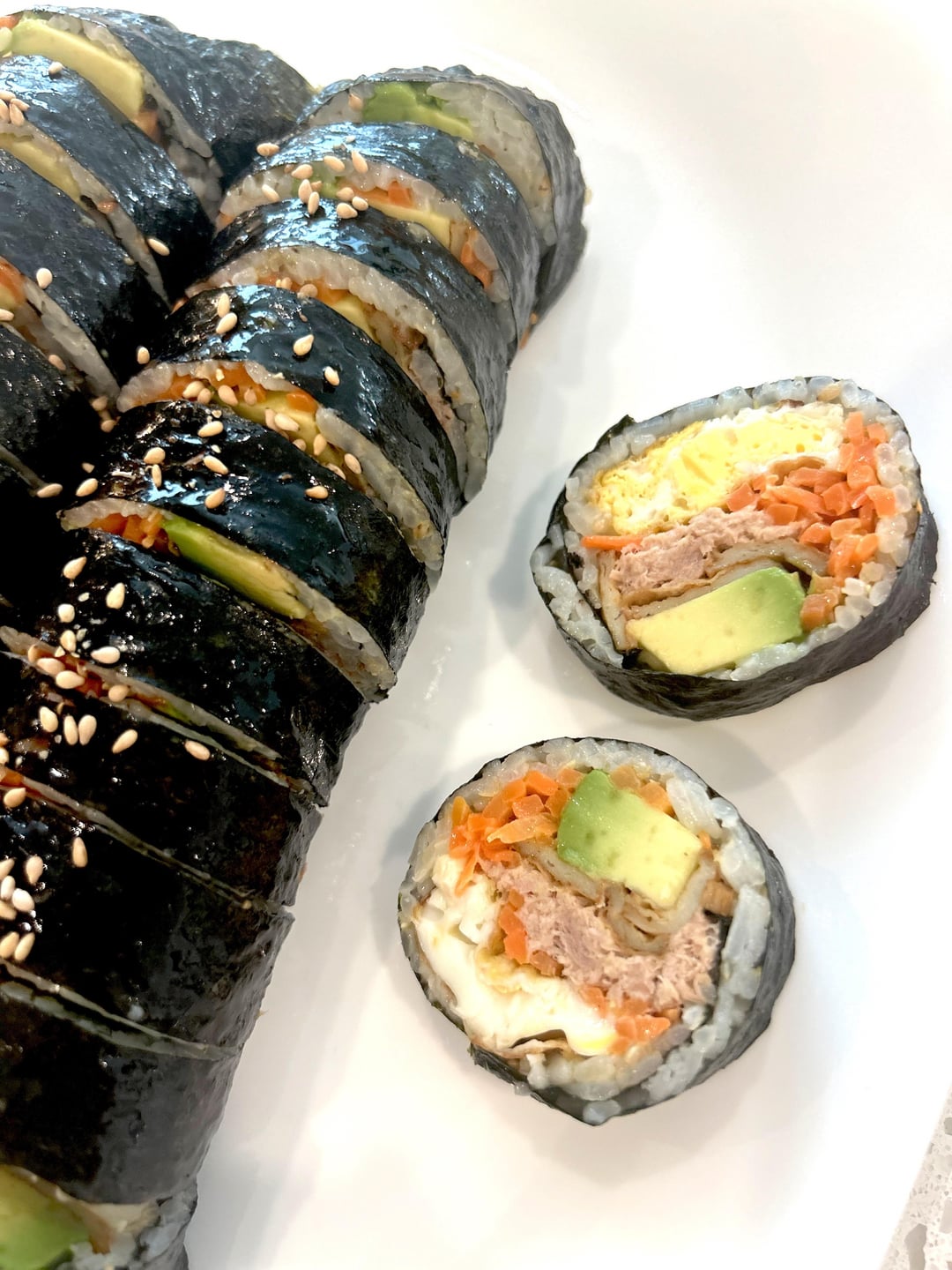 Classic gimbap usually includes ham, imitation crab, and pickled radish, but I left those out this time.
