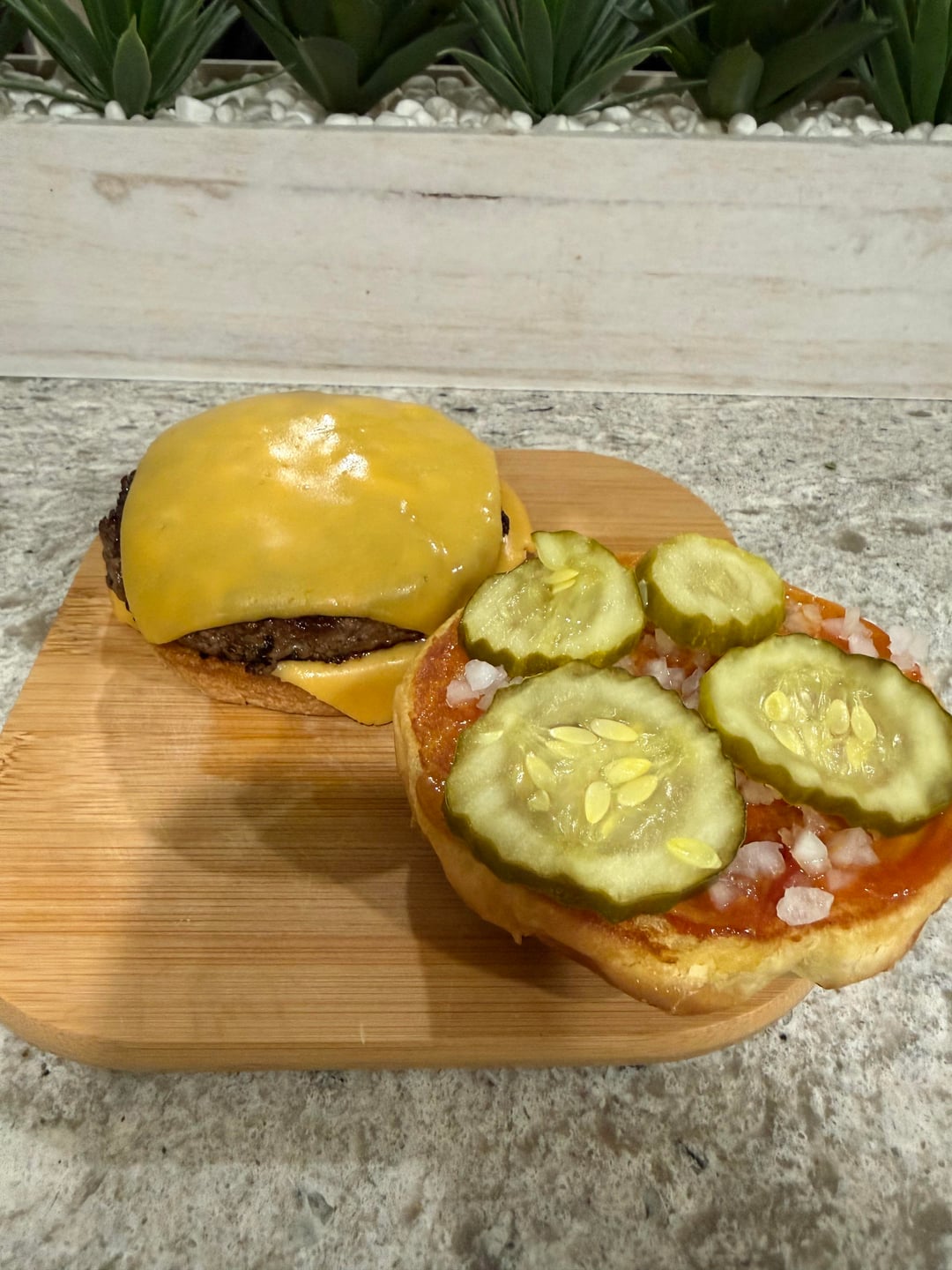 Have a friend staying over and they had a request. They wanted a McDonald's cheeseburger dupe, but with a hefty patty. Diced onions, American cheese, extra pickles. No lettuce, no tomato – exactly how it would come on a McD's cheeseburger.