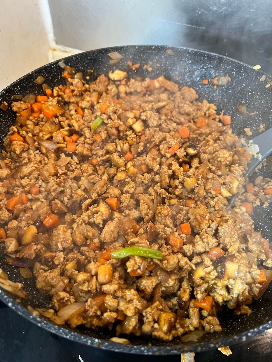 – Cooked onions/carrots/mushrooms and added garlic/ginger/white scallions and cooked for 5 mins