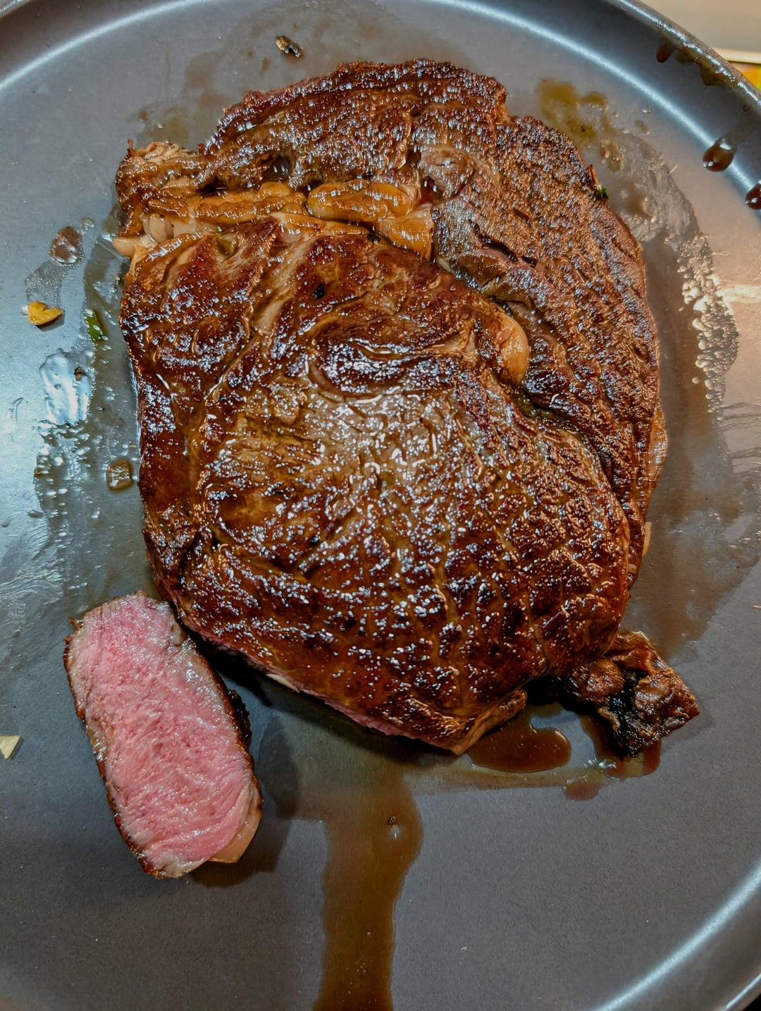 Dry brined for about 6 hours, left out of the fridge 2 hours before cooking. The stove temp stayed at around 3 for most of the cook and I had to give it about a 3 minute rest in the middle of cooking because the cap was looking so crispy.
