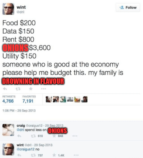 But if you break down the ” food” category, that is also half onions, so gotta add that to it.
