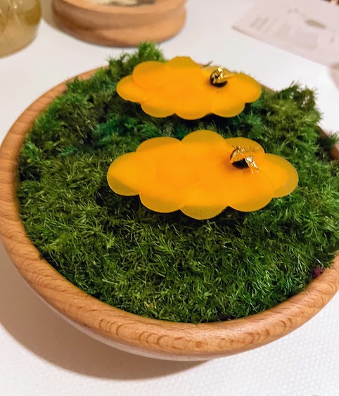 It’s ostensibly seven courses, but little inter-course dishes often appeared. This added to the total length of the meal, especially as there were quite substantial gaps in service. Like most married couples, I suspect, we soon run out of small talk when alone together and so we spent a fair bit of time at our table doom scrolling.