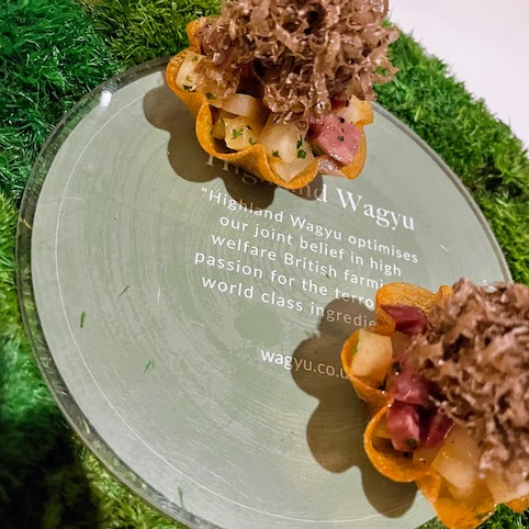 Acleaf’s Wagyu in fact comes from the Highlands, here a sirloin was plated with a braised rump beignet and topped with, again, a Perigord truffle and adorned with mushroom puree and a black garlic puree.
