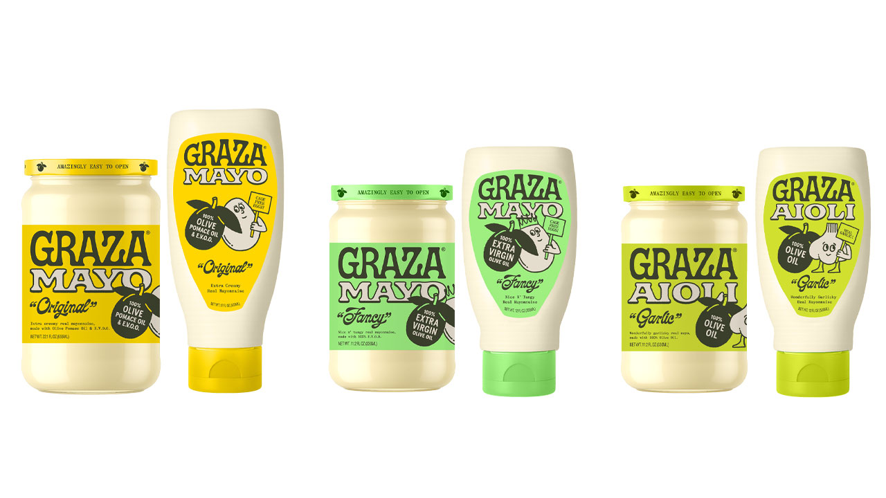 Graza is the 5th largest olive oil brand nationally in under four years, and is traditionally known for redefining the category with Sizzle & Drizzle. Graza is making its boldest move yet — expanding beyond olive oil and into condiments with the launch of Graza Mayo, a new line of olive oil-based mayos rolling out at retail this month.