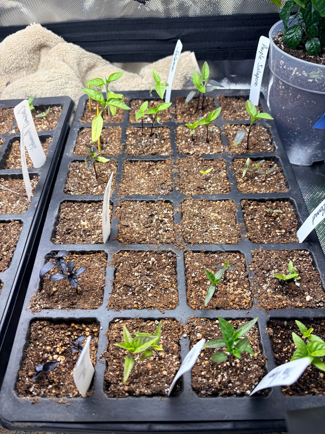 Still learning some things. Watering seems to be something I need to be better at. Looking back I should not have started tomatoes and jalapenos in the same seed trays as chinense. They got a little leggy and I’ll probably need to start over on the tomatoes.