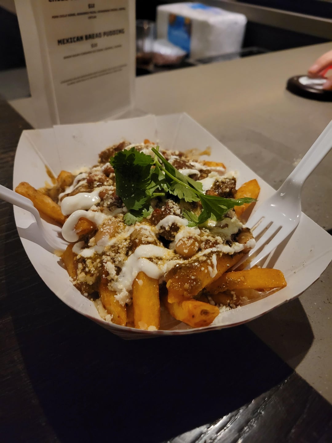 My friends and I split an order of the Chile verde fries but they were disappointing. The toppings were not warm so the whole thing went cold fast and there wasn't much seasoning to the sauce, not even salt.