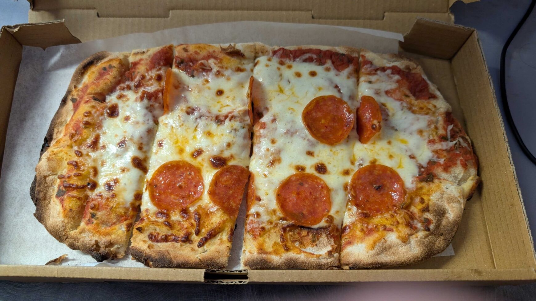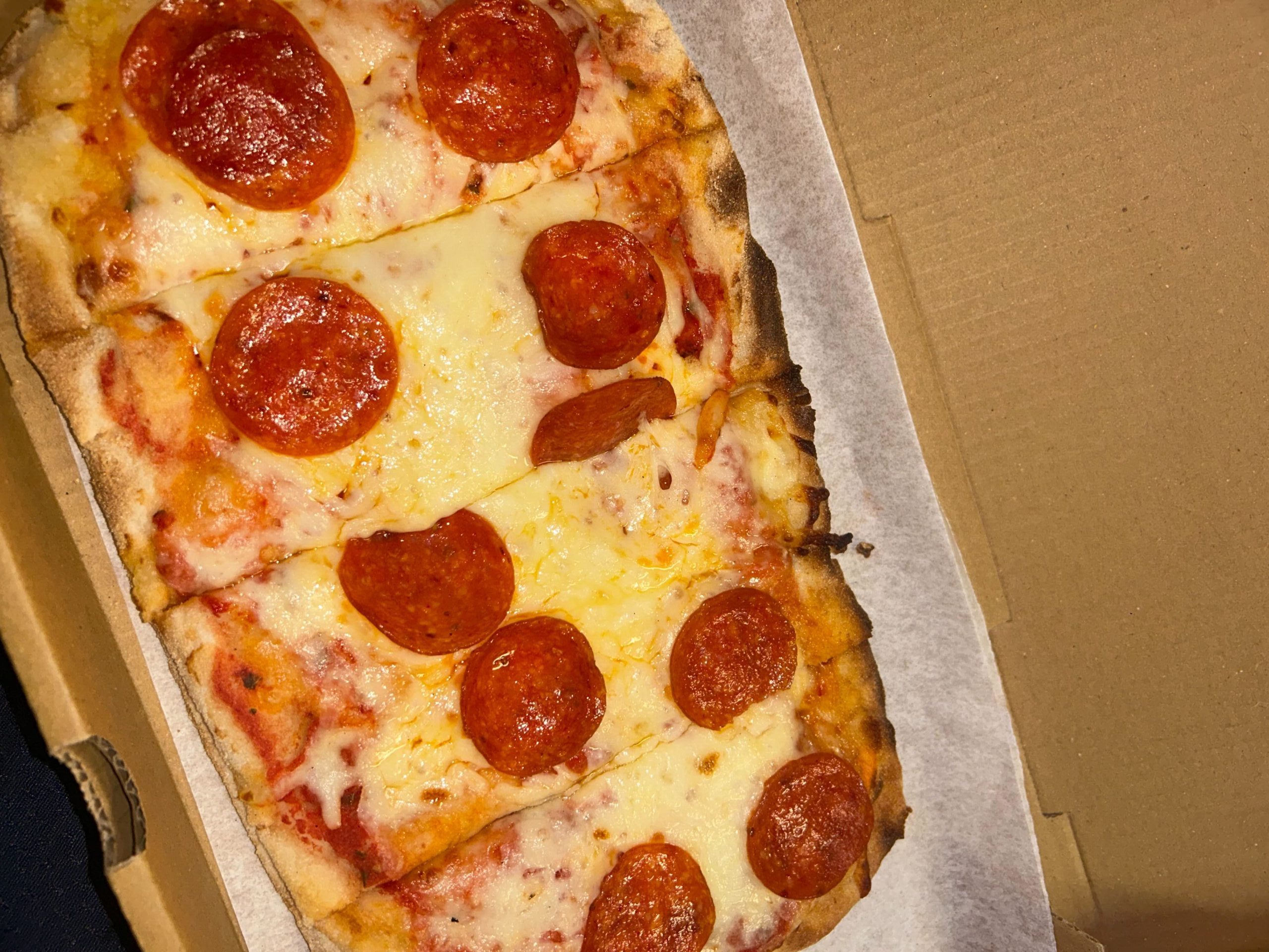 This pizza was the perfect size for one person to eat as a meal. I would say it is equivalent to 2-3 average-sized slices of pizza, which is what I normally eat. Amici’s prices are honestly a little high. You can get a whole pepperoni pizza from East halls for $18.99 or $6.65 with a campus meal plan. Amici’s pizza is around a quarter of that size and costs more than half of that.