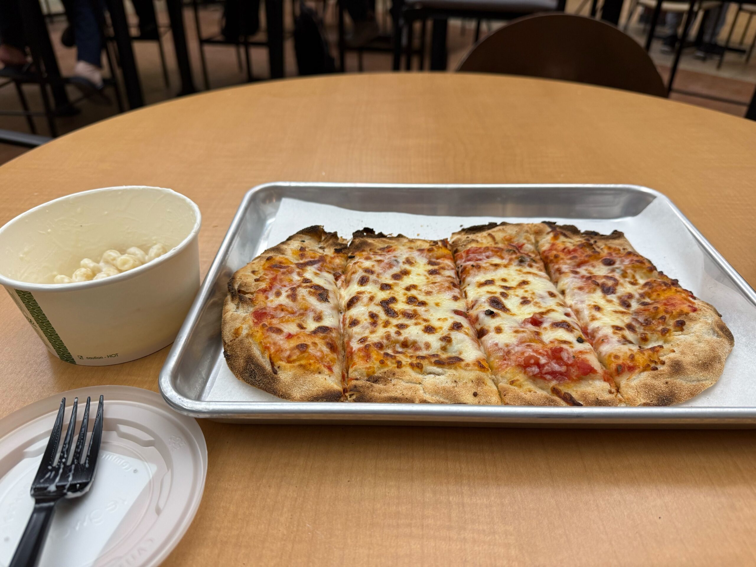 The pizza had both a high and a low bar to clear. There aren’t a ton of great pizza options in State College, but it’s hard for any place to match the stuff back home in Jersey. The Roman-style pizza was, unlike the pasta, markedly better than the dining hall slices. Something that makes me more optimistic about the next time I come to Amici is that the tomato sauce tasted fresh on the pizza and stayed true to not being the commercial, pizza chain pie.
