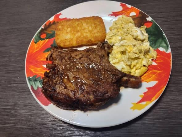 Rib roast with scrambled eggs