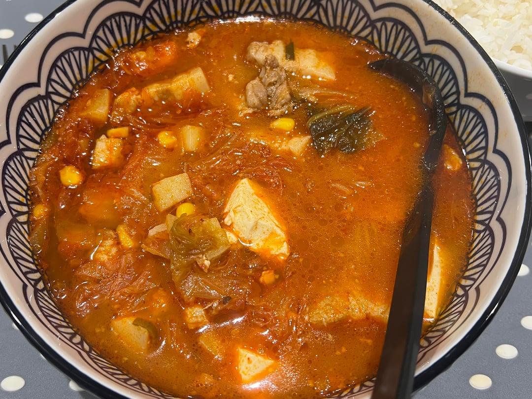 I had some well fermented kimchi. It has pork belly, corn & soft tofu.It was soooo good. I could have easily had 3 bowls of rice but only had one 😜 Home made in England by a Mexican American who loves Korean food!!! by elisabettey 3 Comments Careful_Clock_7168 6 days ago Yummy, I miss the taste of kimchi justprettymuchdone 6 days ago Oooooh I have never thought of adding corn. ximpulse2k 6 days ago recipe pls