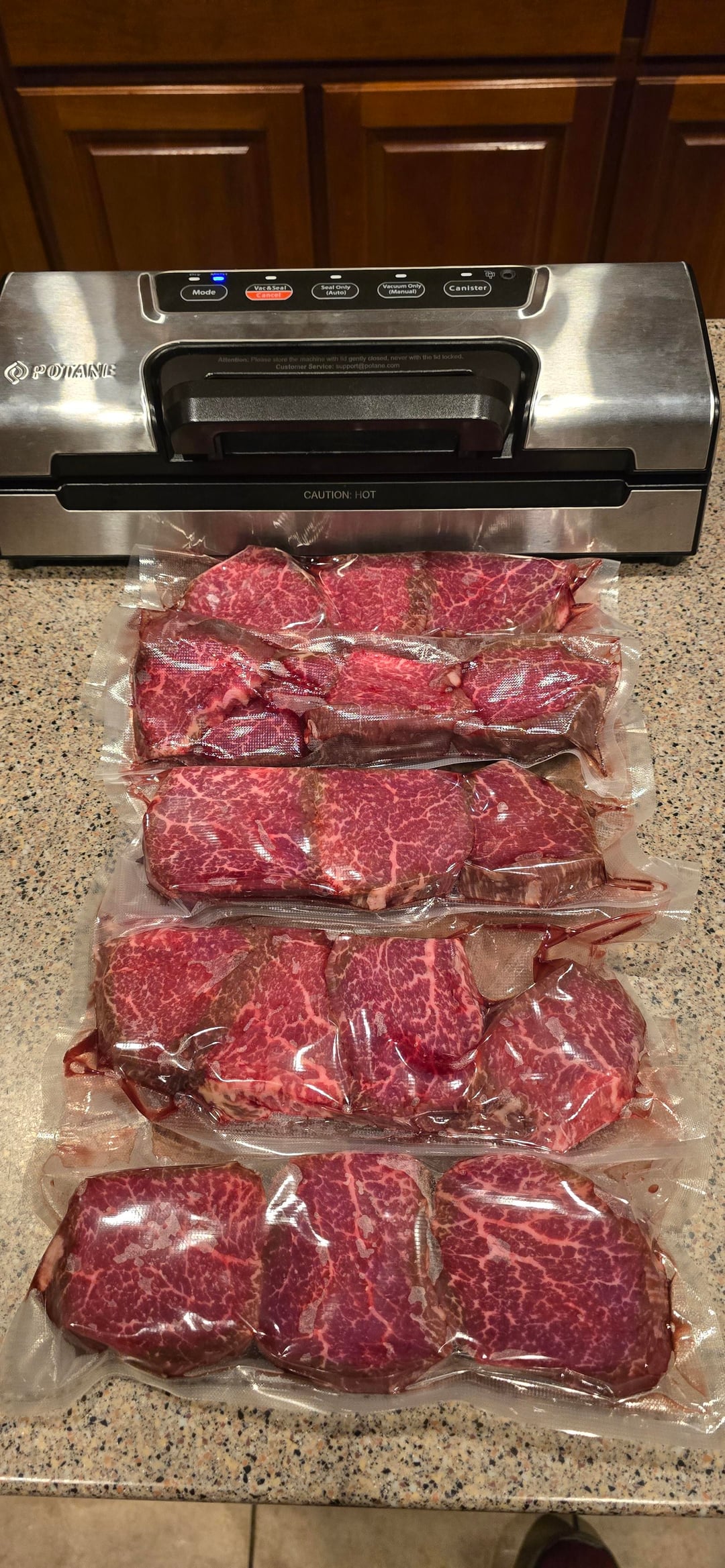 Broke down a couple BMS 6/8 rated tenderloins from First Light Farm USA a couple days ago. When you break down tenderloins, you get a bunch of nice steaks but you also get a tail from each one. Still an amazingly tender, and flavorful piece of meat. While not as pretty as the filet steaks one gets, they're worthy of cooking the right way.