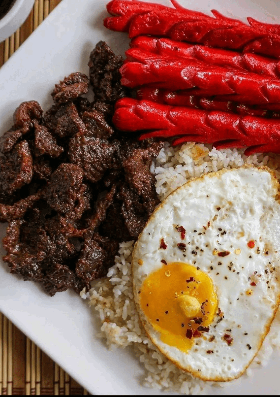 PureFreshMentos 1 week ago Beef tapa, purefoods hot dog, and garlic rice. I really need to visit home again.