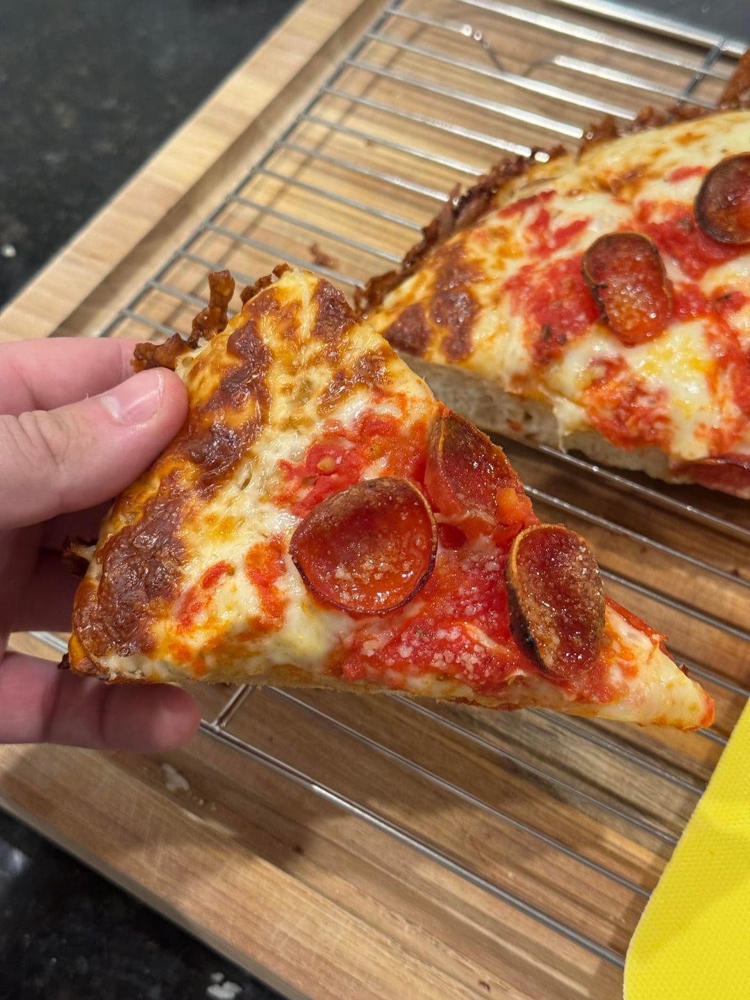 ClayMitchellCapital 3 months ago I think it looks tasty. Out of curiosity do you like the pepperoni concentrated in one spot or just didn’t bring them out to the edges.I used to make them in my teens and my boss would get on my case about it. Thanks for posting.