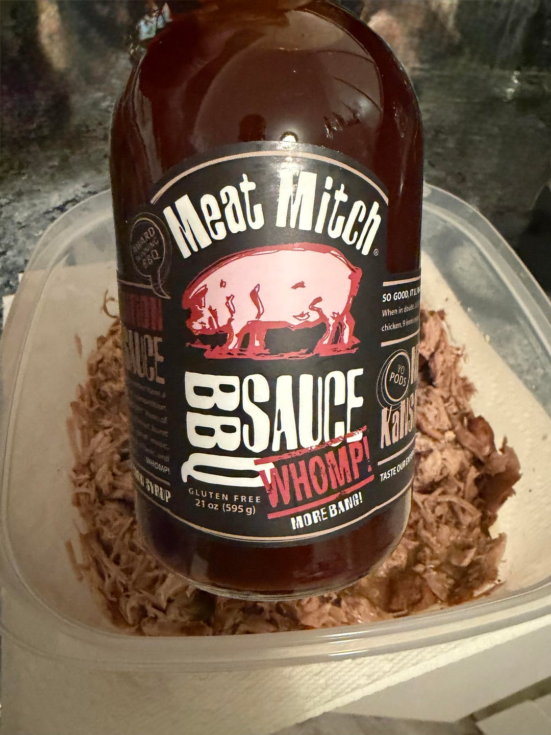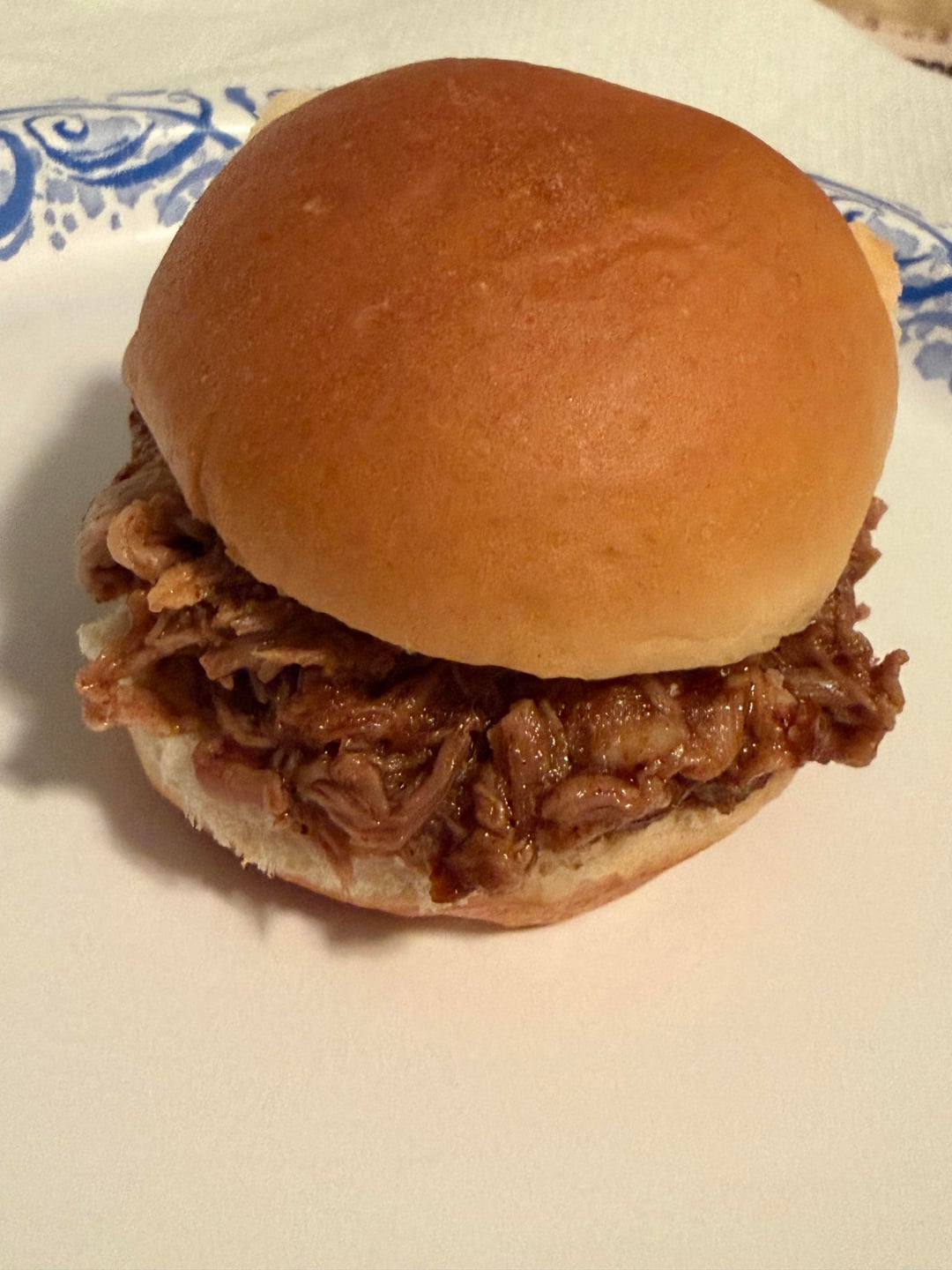 Low and slow pork shoulder in the crockpot in a bath of Apple Juice – add BBQ and place on a Kings Hawaiian slider roll 🤌🏼by WhiteRhino19 Dining and Cooking