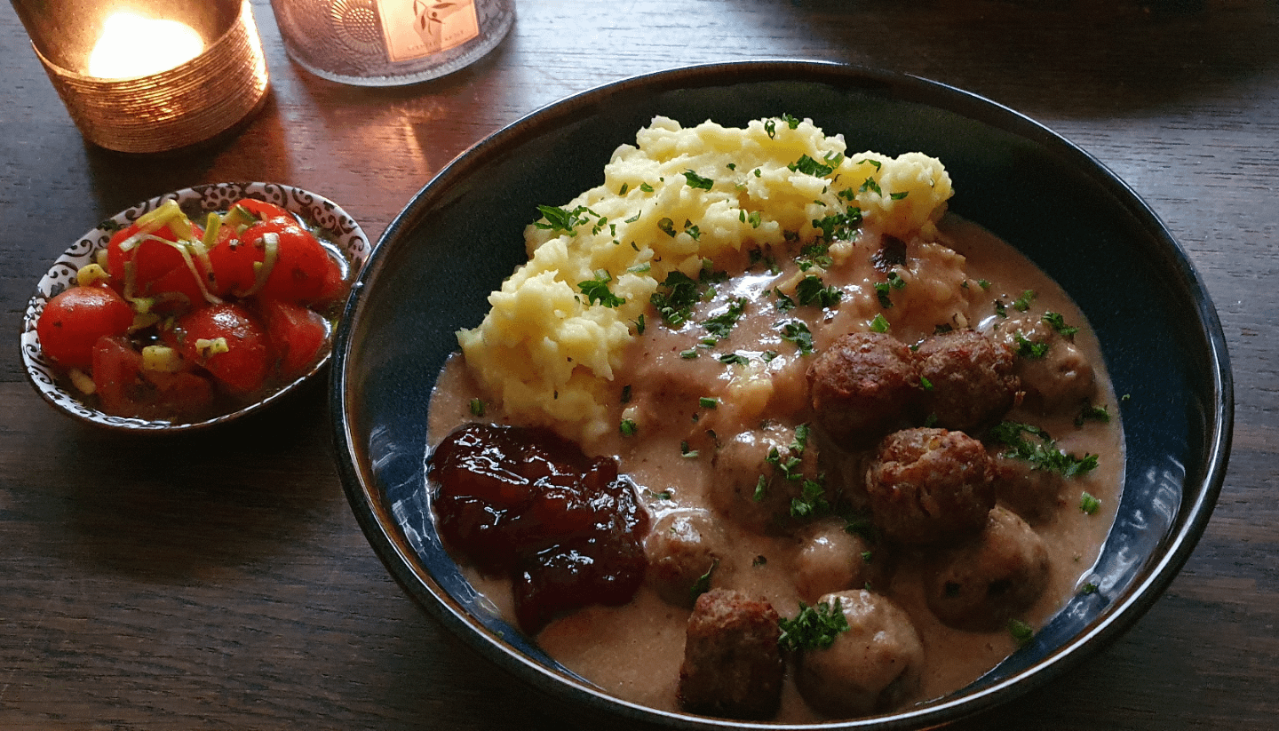I was craving typical Swedish meatballs called Köttbullar so much that I simply made them myself at home. Normally you would make a classic cucumber salad with it, but I didn't have any cucumbers left, so I'm making a tomato salad instead. Simple but very delicious.